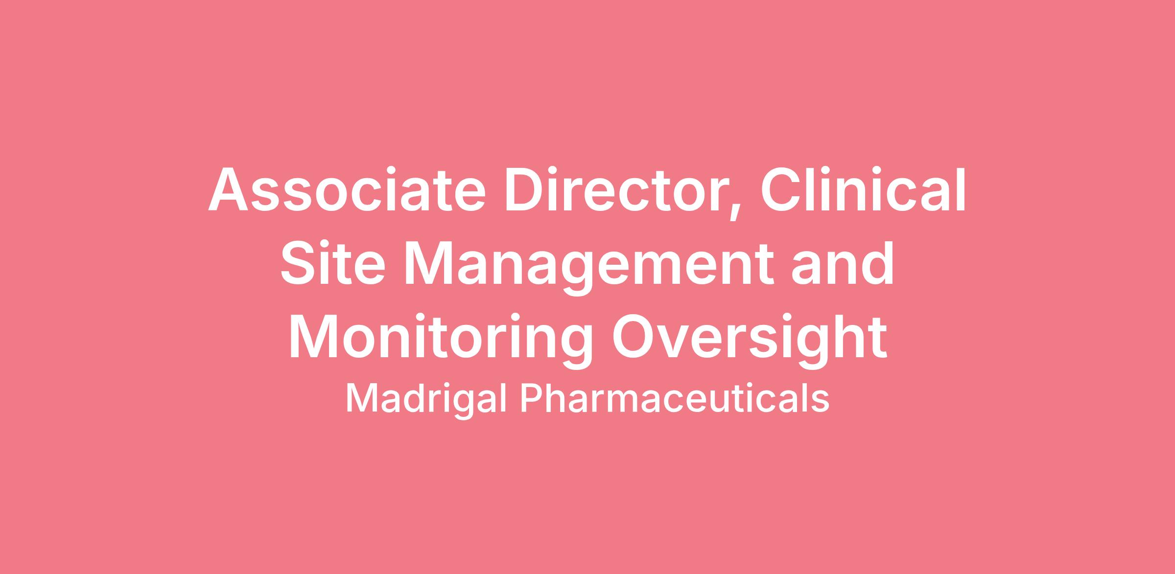 Associate Director, Clinical Site Management and Monitoring Oversight