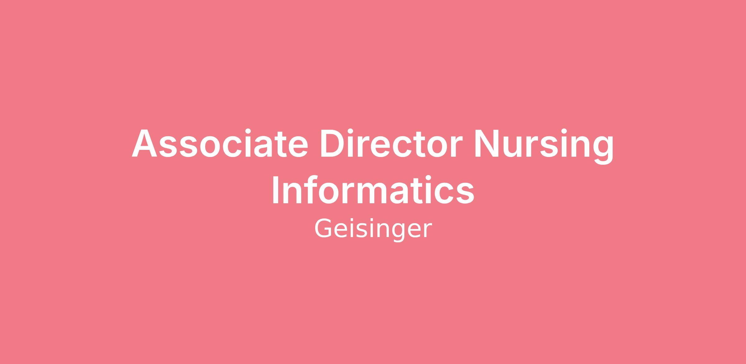 The Associate Director of Nursing Informatics provides strategic and operational leadership for nursing informatics across Geisinger. Reporting directly to the Chief Nursing Informatics Officer (CNIO), this role partners closely with nursing informatics leadership to lead, support, and develop the Nursing Informatics team within IT. Responsible for ensuring alignment between nursing practice, clinical operations, digital health strategy, and enterprise priorities. This role serves as a key liaison among nursing leaders, clinicians, IT, analytics, quality, education, and operational stakeholders to optimize the electronic health record (EHR), clinical workflows, and data-driven nursing practice across the continuum of care.