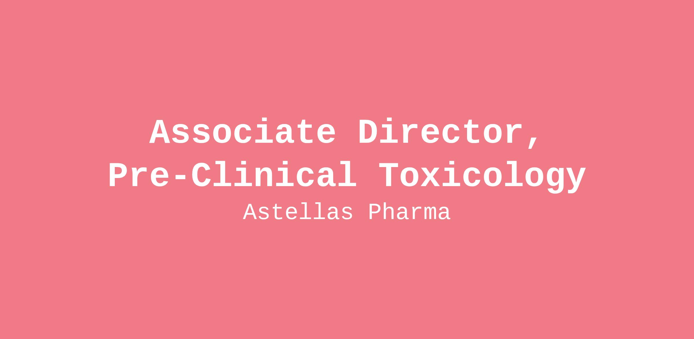 - PhD in life science area (toxicology, biochemistry, cell biology, etc) and at least 7 years of experience in toxicology and/or regulatory science working in the pharmaceutical and/or biotech industry.