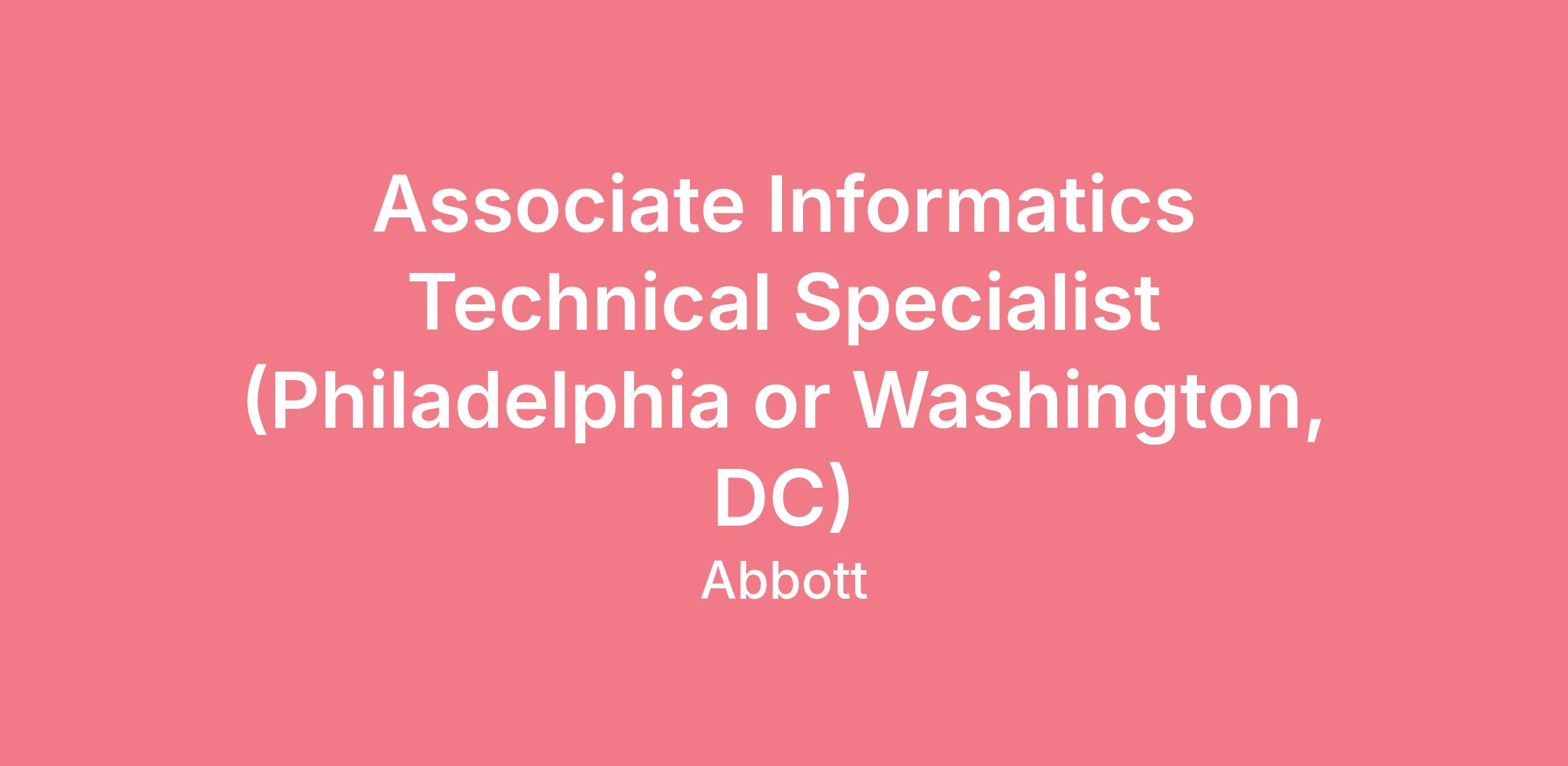 Associate Informatics Technical Specialist (Philadelphia or Washington, DC)