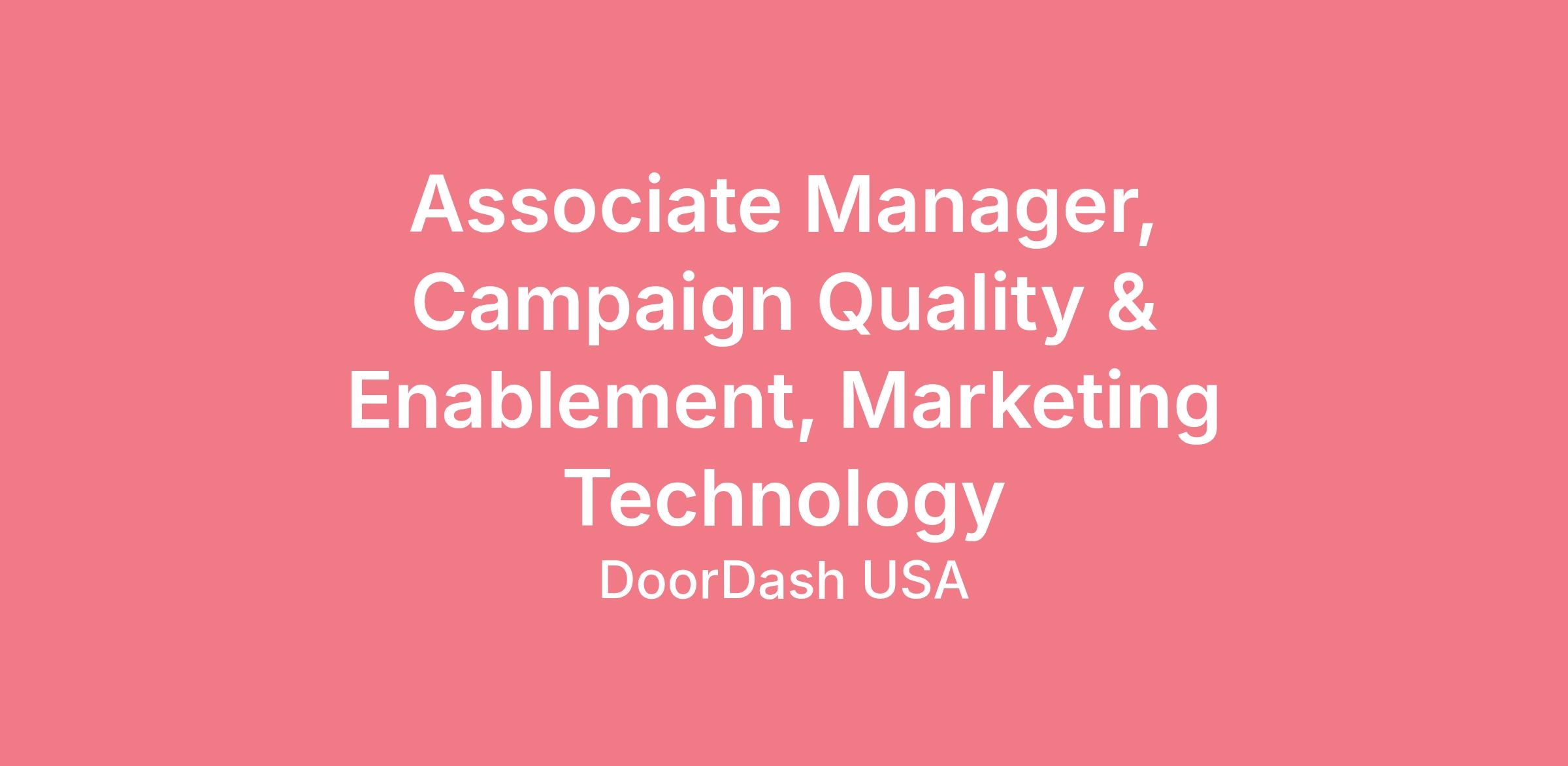 We're looking for an Associate Manager to own campaign quality and enablement for our communications stack. As DoorDash scales—more campaigns, more locales, more personalization—the risk of human error grows with it. Your job is to build the tools and systems that let marketing teams move faster without increasing risk.