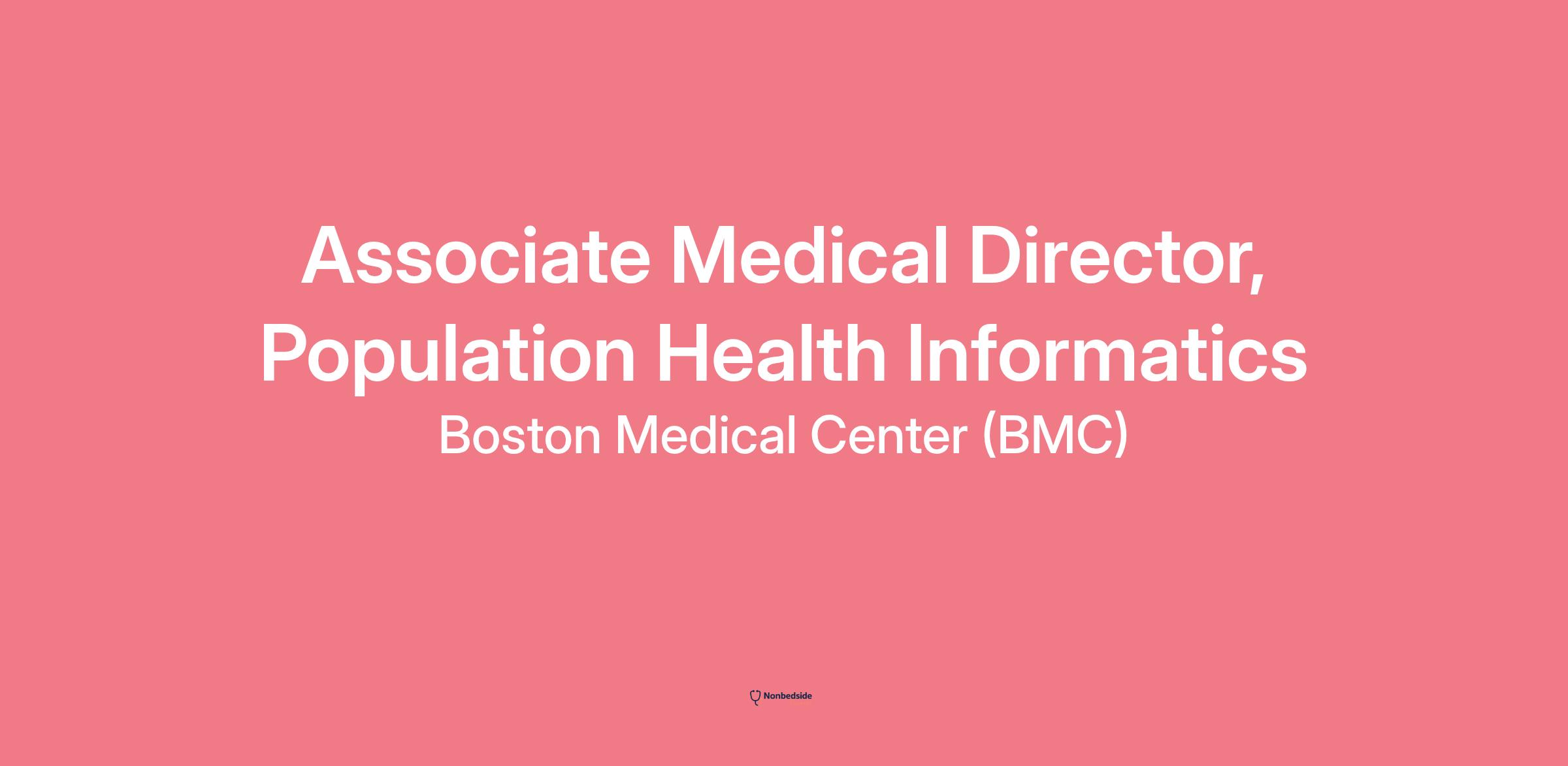 The Associate Medical Director, Population Health Informatics is the physician informatics lead for three health system priorities: value‑based care, population health, and community health center integration.