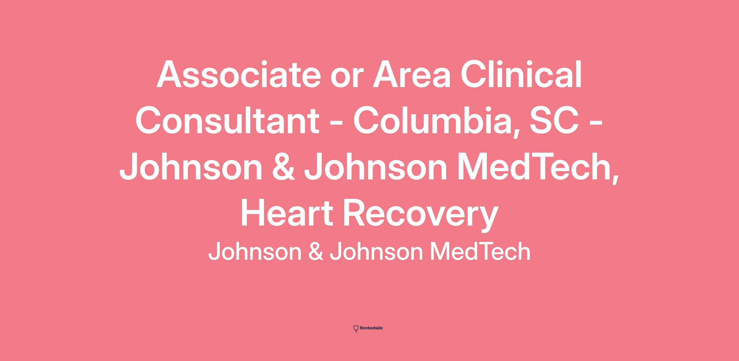 Join to apply for the Associate or Area Clinical Consultant - Columbia, SC - Johnson & Johnson MedTech, Heart Recovery role at Johnson & Johnson MedTech