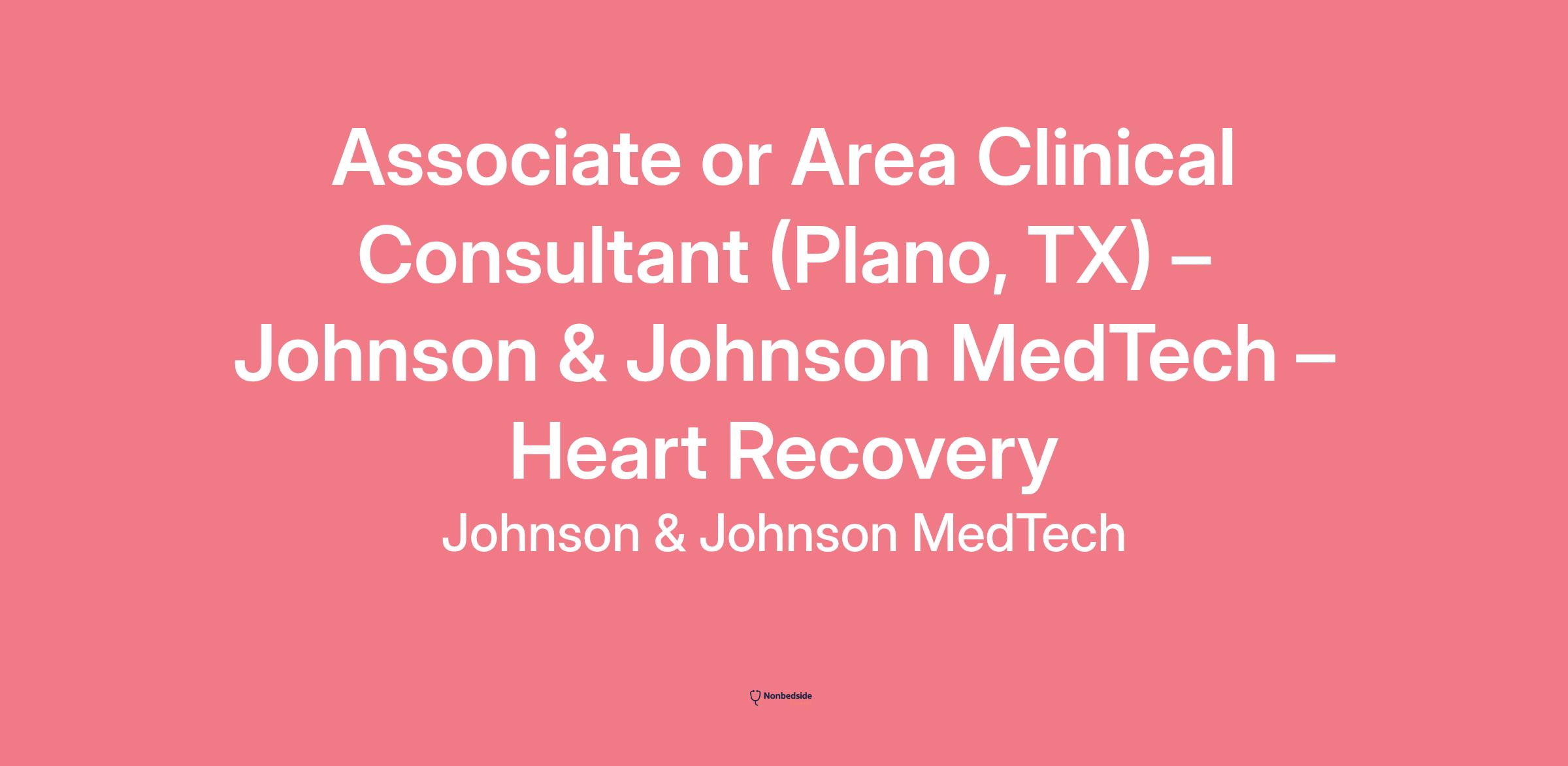 Overview Associate or Area Clinical Consultant (Plano, TX) – Johnson & Johnson MedTech – Heart Recovery