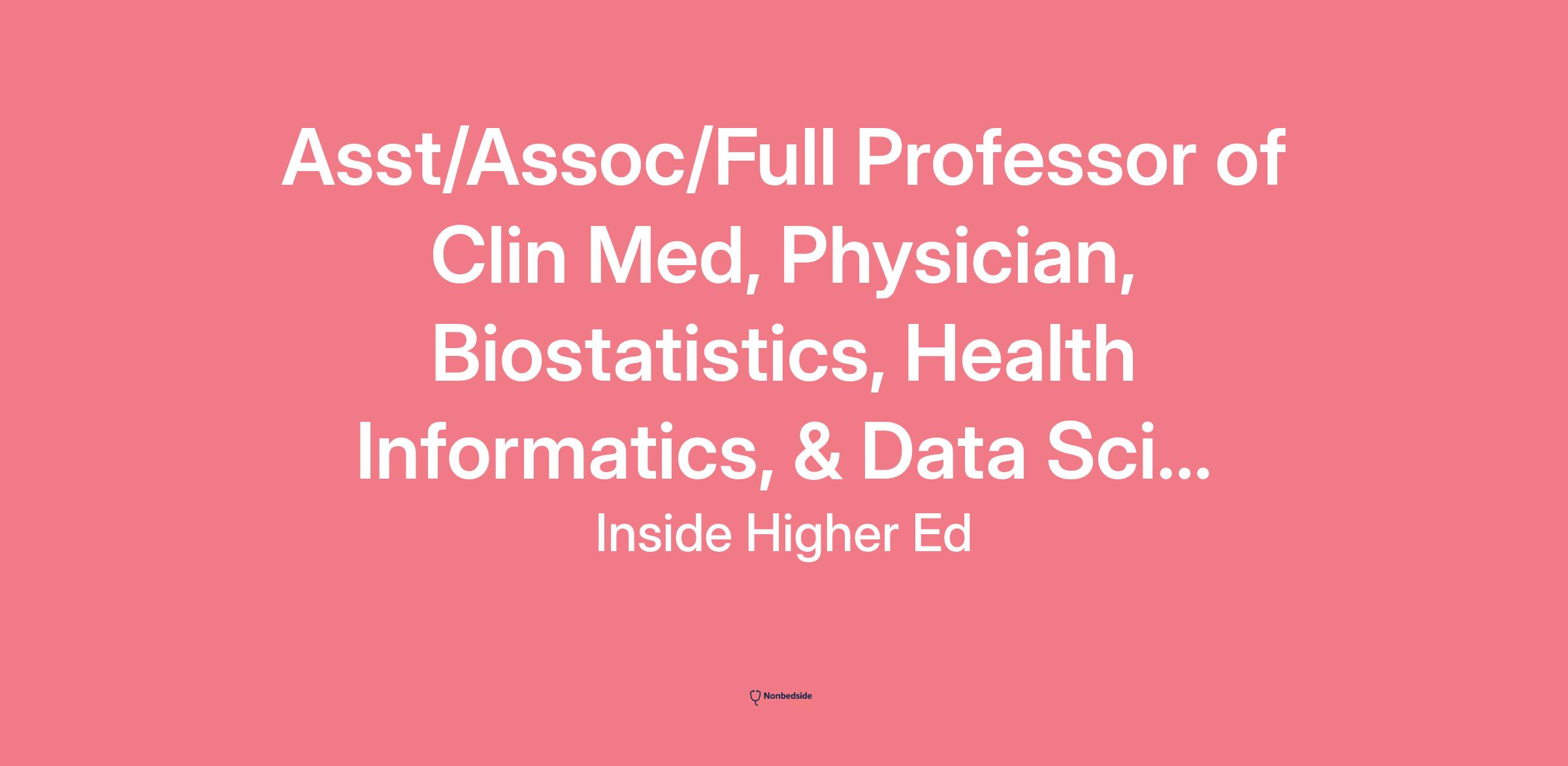 Asst/Assoc/Full Professor of Clin Med, Physician, Biostatistics, Health Informatics, & Data Sci…