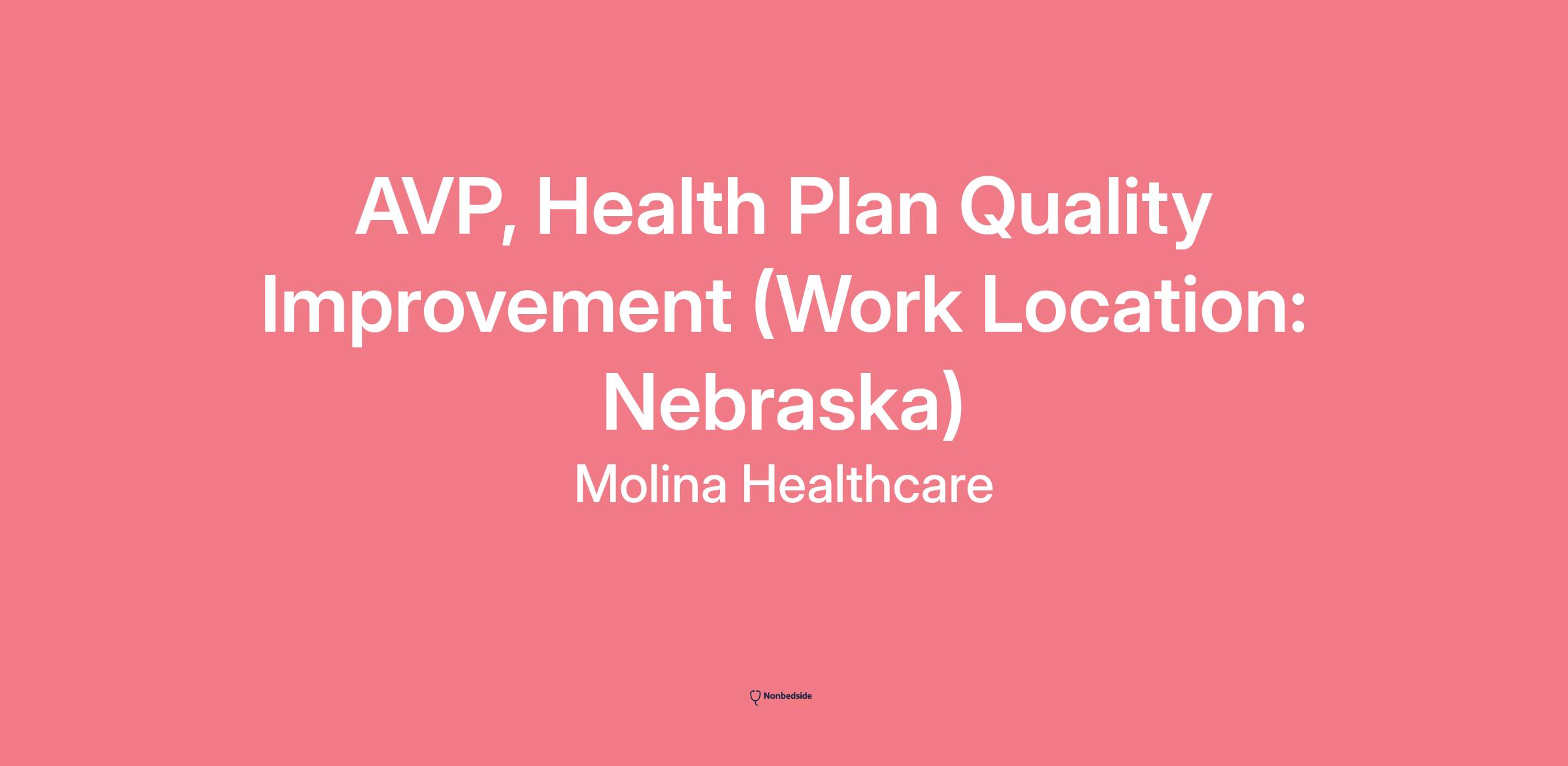 AVP, Health Plan Quality Improvement (Work Location: Nebraska)