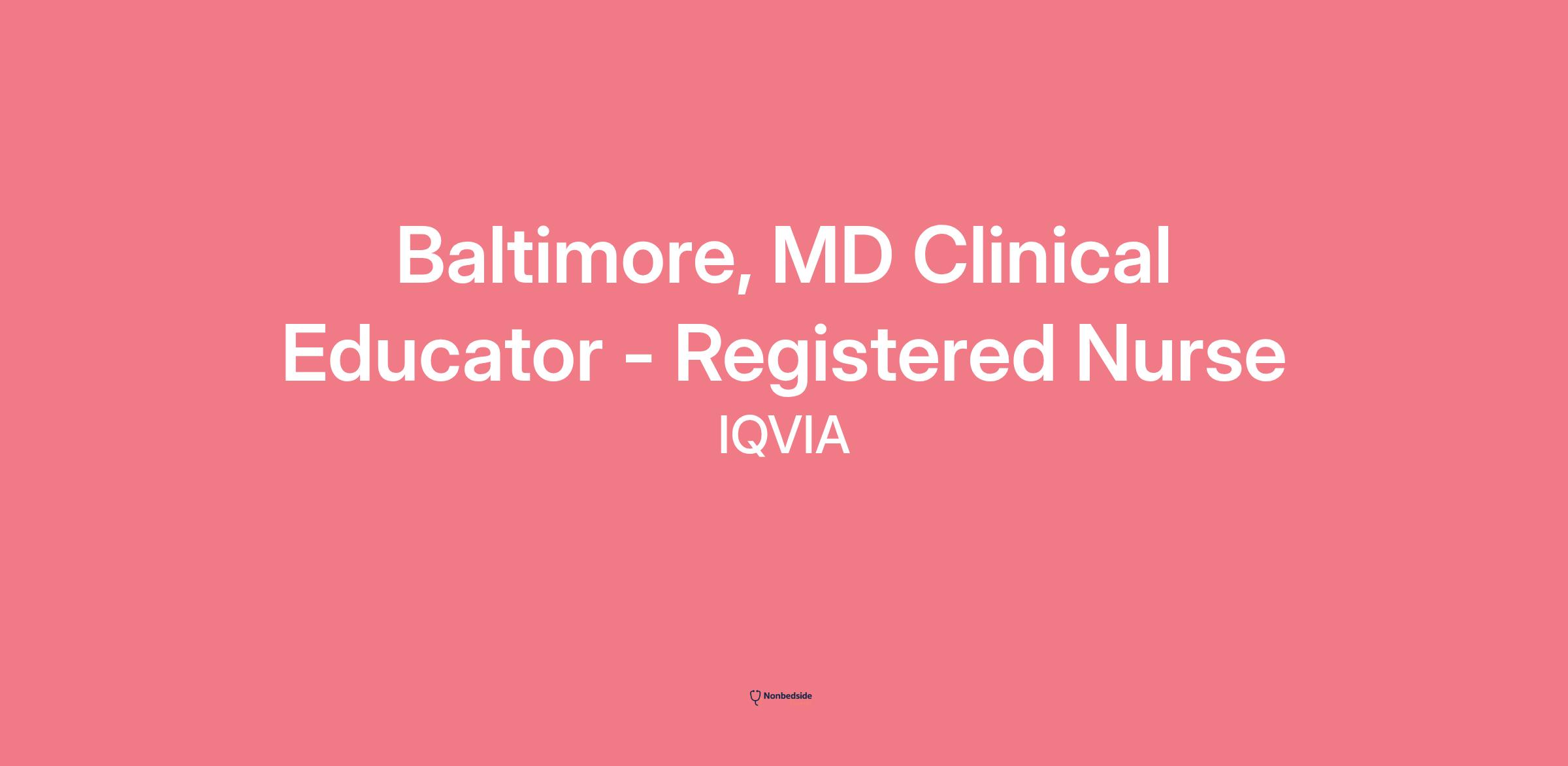 Join to apply for the Baltimore, MD Clinical Educator - Registered Nurse role at IQVIA .