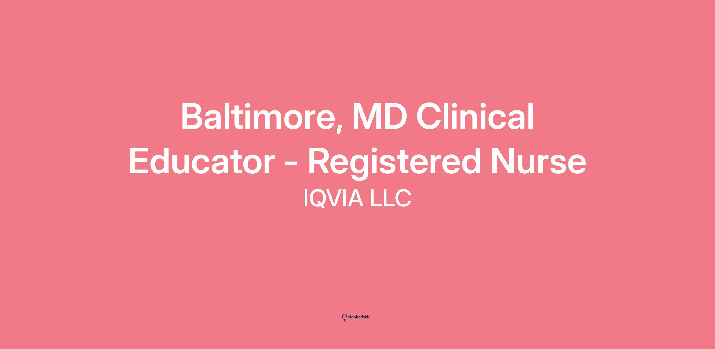 Baltimore, MD Clinical Educator - Registered Nurse page is loaded## Baltimore, MD Clinical Educator - Registered Nurselocations: Baltimore, MDtime type: Part timeposted on: Posted Yesterdayjob requisition id: R1510275IQVIA/MedTech takes the approach to helping customers drive healthcare forward in this challenging, fast-paced environment. We help customers accelerate results, improve patient outcomes, and unleash new opportunities.**We are hiring RN Clinical Educators.**As a RN Clinical educator, you will have the opportunity to develop strong leadership and educator skills and interact with peers in the healthcare setting without patient care responsibilities. You will be at the forefront of cutting-edge medical device technology and gain professional growth and exposure to medical device industryIf you have a desire to expand your talents in clinical education, we invite you to apply! You will be asked to create and account, which takes less than one minute and requires only a username and password. The entire application takes 5-7 minutes to complete.**Job Description:**Our RN Clinical Educators experience a unique opportunity to employ their clinical and nursing expertise in a new way outside patient care, while continuing to collaborate with healthcare professionals and advocate for the well-being of patients through medical device technology.Qualified Clinical Educators - will be tasked with educating Registered Nurses and Physicians on **Pulse Oximetry Devices.**Your primary focus will be in-servicing and education only; there are no sales responsibilities and no bedside/patient care.This is a per-diem position requiring national travel to support customer needs. There will be 2 assignments per month, ranging 3-5 days per assignment.**Responsibilities:*** Provide peer-to-peer education and in-servicing to nurses, physicians, and hospital staff to support medical device implementations* Assess customer-specific education needs and collaborate with staff to deliver a positive educational experience* Utilize clinical/nursing expertise to answer questions and address concerns with the medical device* Provide updates, reports, and valuable feedback to client during and after in-service assignments* Provide clinical and professional expertise to end users including RN staff, Physicians and other healthcare professionals in a setting without patient care* Provide customer feedback to corporate teams to improve new and existing medical devices* Serve as an education resource on the particular device**Job Requirements – Registered Nurses*** BSN highly preferred* RN license required* ICU, Oncology, ER and/or critical care unit experience of at least 2+ years, experience within past 5 years required* Leadership experience (manager, educator, preceptor) preferred* Must be comfortable with basic software programs* Experience working with IV pumps desired, but not required* Super-user/ pump education experience desired, but not required* Intermediate computer skills required* Ability to work in a group setting and exhibit strong professional acumen* Duties may require compliance with client and hospital requirements that all those performing services on-site be fully vaccinatedThe pay range for this role is $34.00 - $36.00 hourly. The actual pay will vary based on qualifications and competencies.**You will have a flexible schedule, an opportunity to travel, grow and expand into new opportunities while earning supplemental income and learning the medical device industry.**IQVIA is a leading global provider of advanced analytics, technology solutions and clinical research services to the life sciences industry. We believe in pushing the boundaries of human science and data science to make the biggest impact possible – to help our customers create a healthier world. Learn more atWe are committed to providing equal employment opportunities for all, including veterans and candidates with disabilities.As the COVID-19 virus continues to evolve, IQVIA’s ability to operate and provide certain services to customers and partners necessitates IQVIA and its employees meet specific requirements regarding vaccination status.IQVIA is a leading global provider of clinical research services, commercial insights and healthcare intelligence to the life sciences and healthcare industries. We create intelligent connections to accelerate the development and commercialization of innovative medical treatments to help improve patient outcomes and population health worldwide. Learn more atIQVIA is proud to be an equal opportunity employer. All qualified applicants will receive consideration for employment without regard to race, color, religion, sex, sexual orientation, gender identity, national origin, disability, status as a protected veteran, or any other status protected by applicable law.The potential base pay range for this role is $34-36.00 per hour. The actual base pay offered may vary based on a number of factors including job-related qualifications such as knowledge, skills, education, and experience; location; and/or schedule (full or part-time). Dependent on the position offered, incentive plans, bonuses, and/or other forms of compensation may be offered, in addition to a range of health and welfare and/or other benefits.IQVIA is a leading global provider of clinical research services, commercial insights and healthcare intelligence to the life sciences and healthcare industries. We create connections that accelerate the development and commercialization of innovative medical treatments. Everything we do is part of a journey to improve patient outcomes and population health worldwide.To get there, we seek out diverse talent with curious minds and a relentless commitment to innovation and impact. No matter your role, everyone at IQVIA contributes to our shared goal of helping customers improve the lives of patients everywhere. Thank you for your interest in growing your career with us.