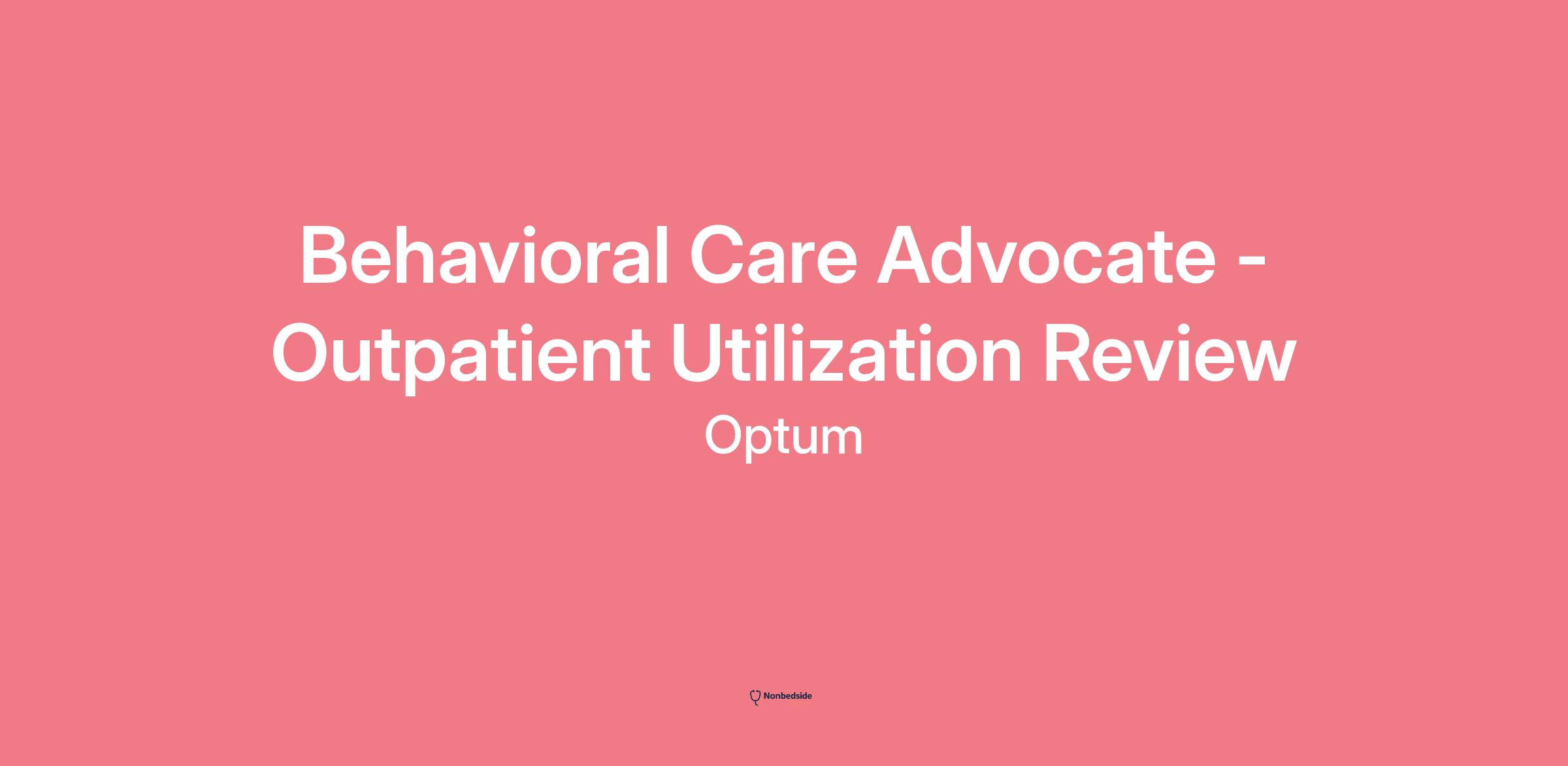 Join to apply for the Behavioral Care Advocate – Outpatient Utilization Review role at Optum.
