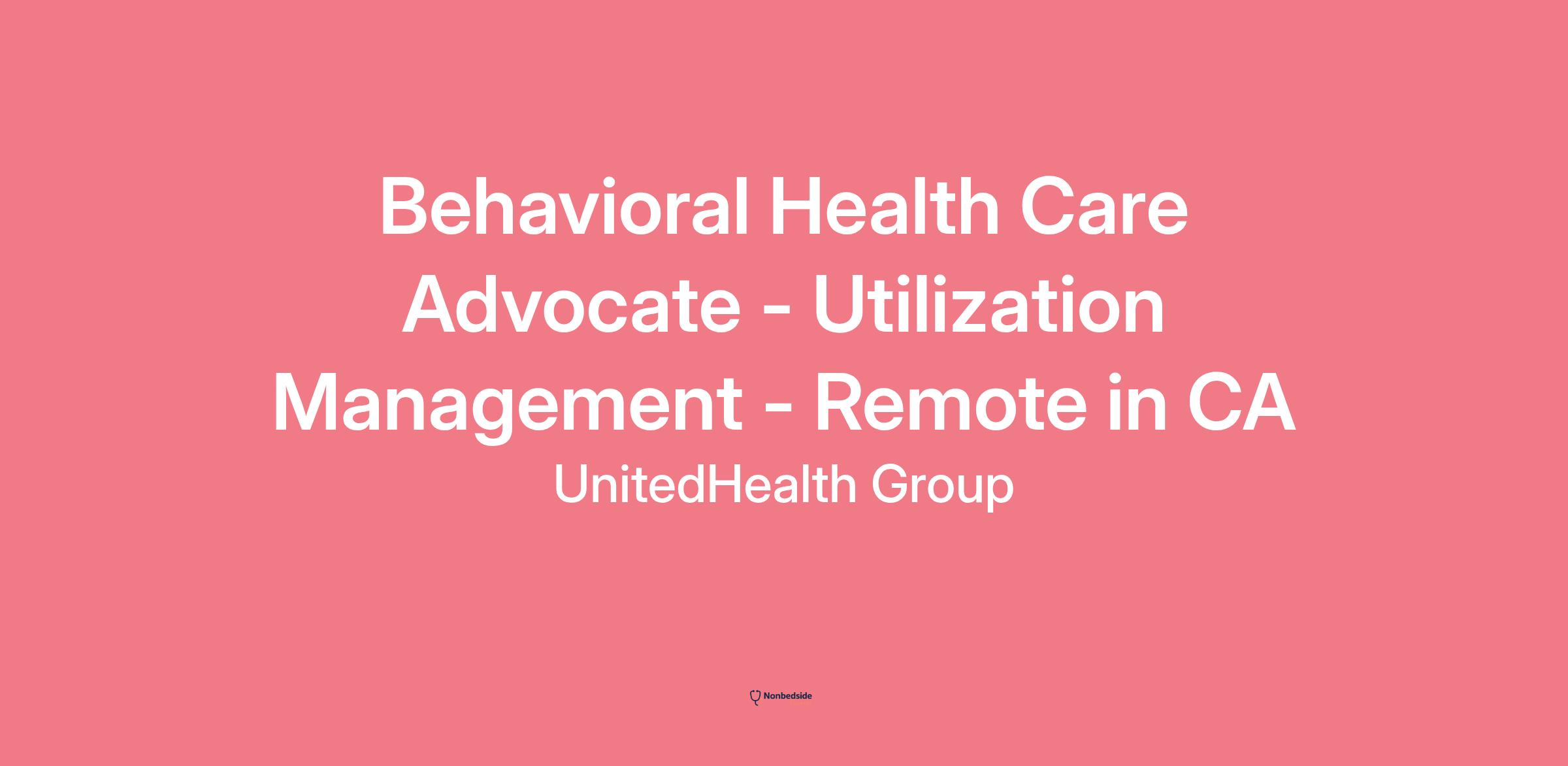 The Optum family of businesses is seeking a Care Advocate to join our team in California. As a member of the Optum Behavioral Care team, you\'ll be an integral part of our vision to make healthcare better for everyone.