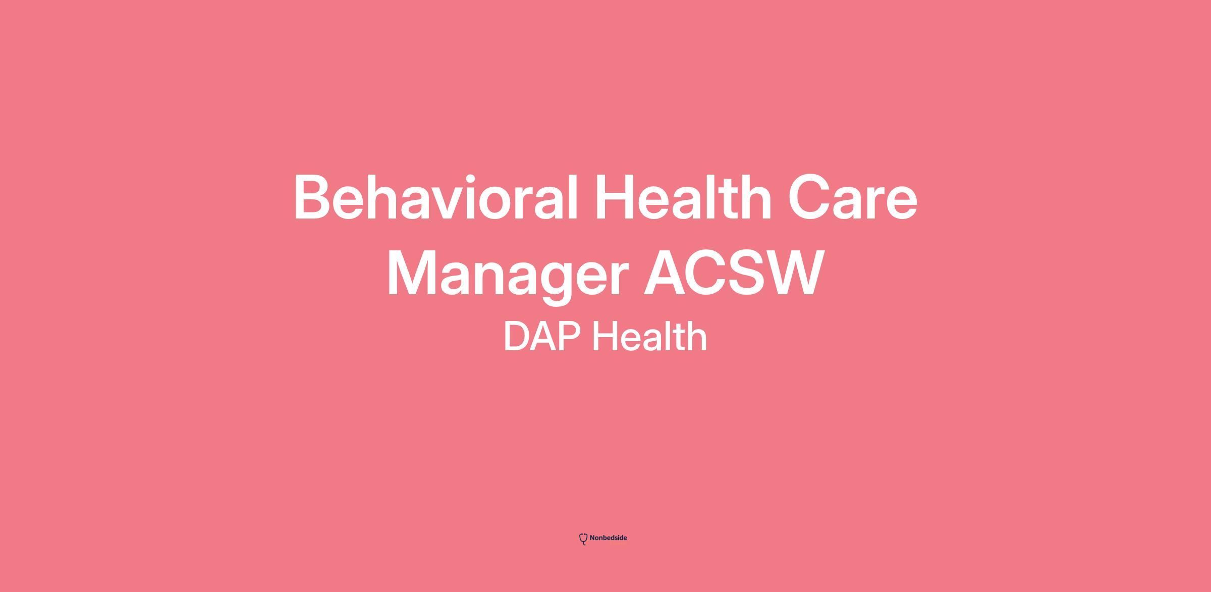 The Behavioral Health Care Manager is responsible for working effectively with the Health Homes Program members and Care Teams. The ACSW/LCSW functions as a proactive team member in the integration of Behavioral Health services into the Primary Care setting. This position will provide Care Management Services including but not limited to: outreach and engagement to members, engaging members in skilled therapeutic interactions to promote health behaviors, other behavioral health interventions within scope, coordination of care, resource linkages, working with other professionals and organizations in the community to ensure quality of care for members, seamless transitions of care, and facilitating the right care and the right time for the member. Is responsible to be a liaison between the Patient, Primary Care Providers and Behavioral Health Providers. Is responsible for caseload management, assists in the integration of whole-person care with goals towards meaningful data collection and improving the health and well-being of the targeted population. Demonstrates willingness to assist co-workers whenever needed. Maintains good working relationship with all clinic personnel. Provides compassionate quality care to the patients of DAP Health.