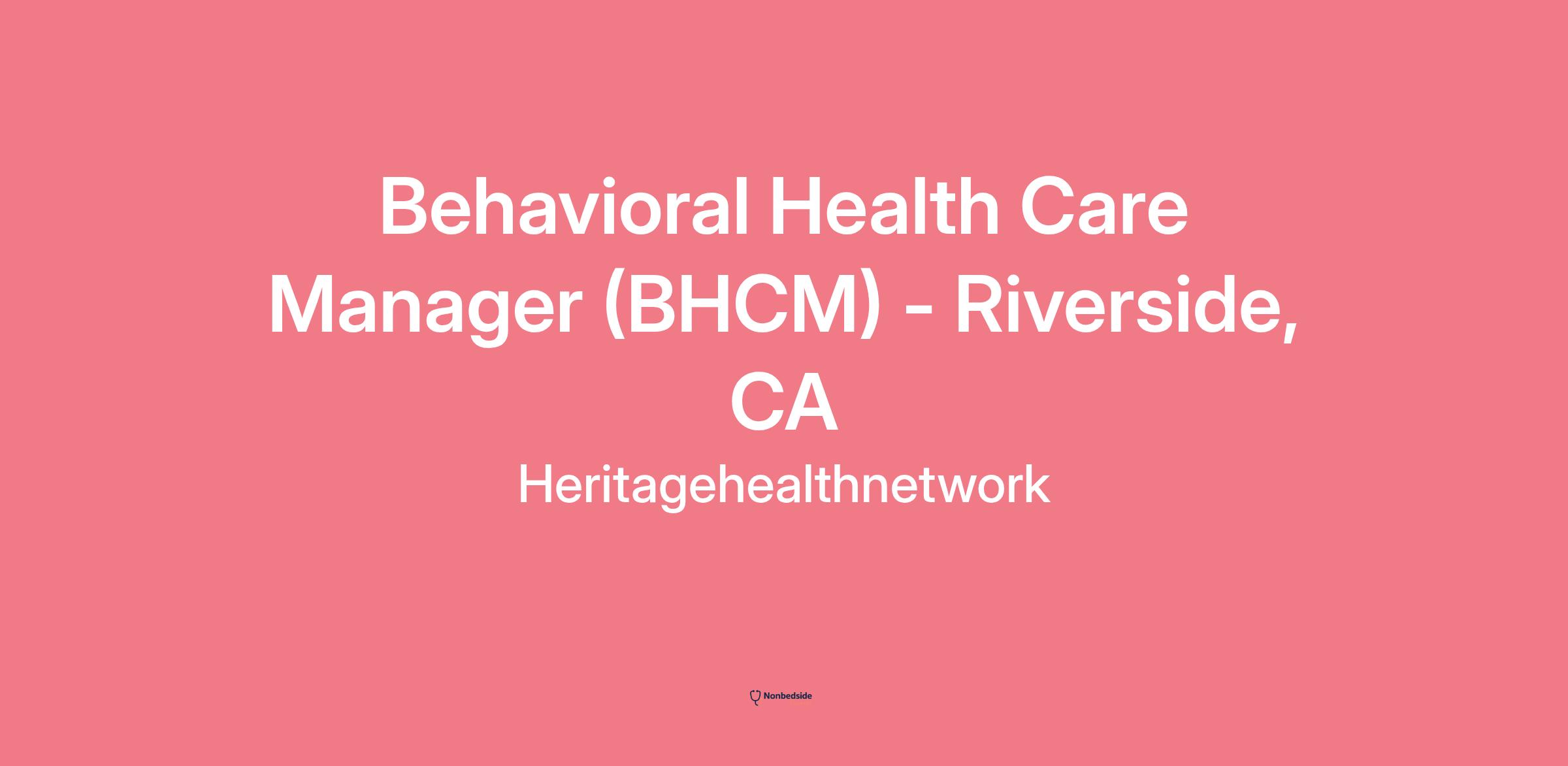 Behavioral Health Care Manager (BHCM) - Riverside, CA Riverside, United States | Posted on 09/23/2025