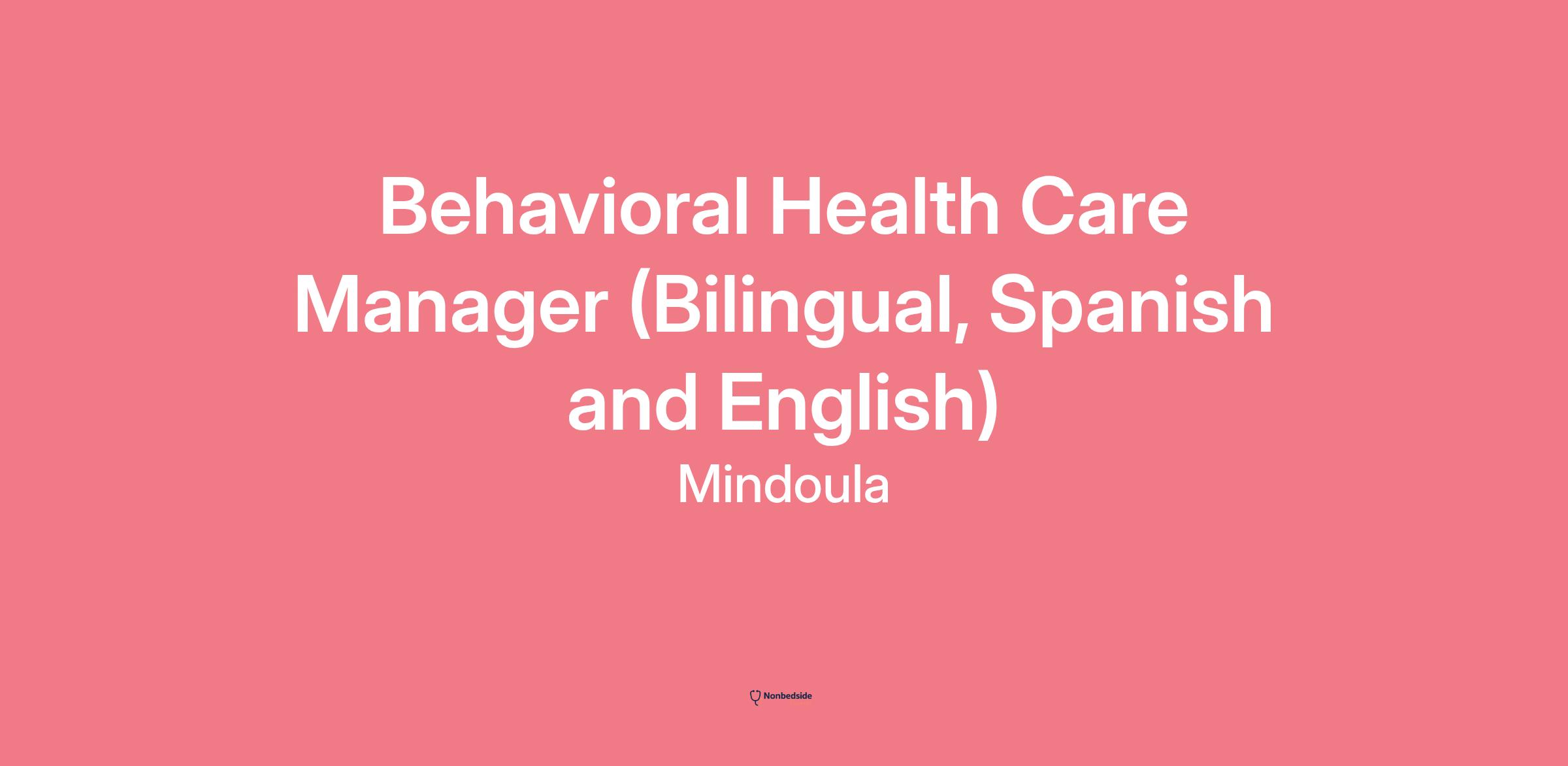 Behavioral Health Care Manager (Bilingual, Spanish and English)