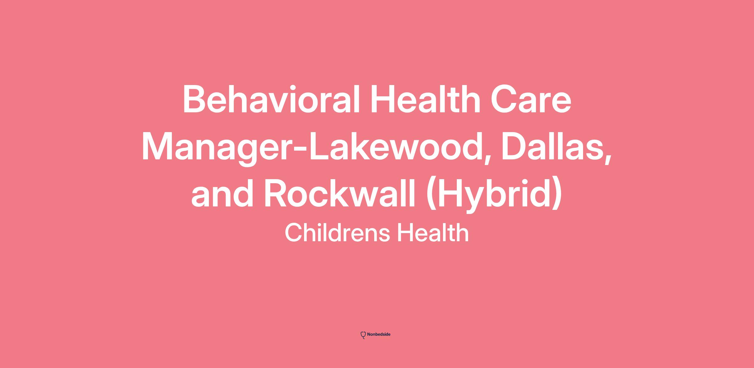 Job Title & Specialty Area: Behavioral Health Care Manager