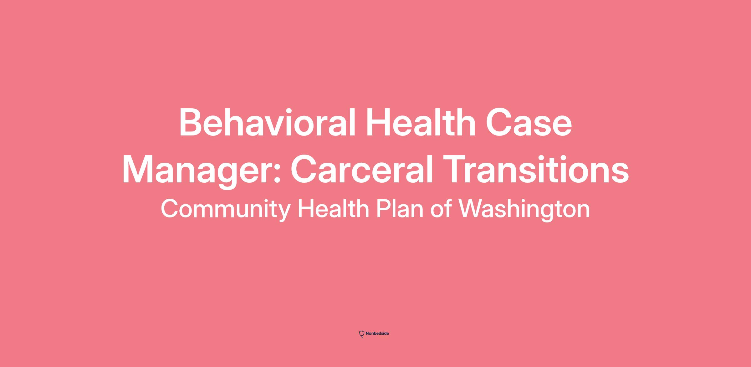 Behavioral Health Case Manager: Carceral Transitions
