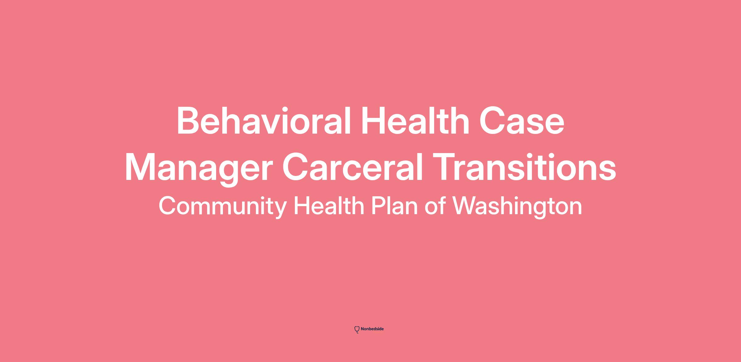 The Carceral Transitions Case Manager (CT CM) responsible for pre‑release planning and short‑term case management of members releasing from city and county jails, Department of Corrections, Juvenile Rehabilitation, and Juvenile Detention facilities, ensuring they are safely and effectively transition back into community settings. Provides short‑term case management services for members with highly complex behavioral health, medical, and social conditions. Working within a multi‑functional team, the CT CM will connect with members, correctional facility staff, providers, caregivers, contracted vendors, community resources, and health plan partners to assess the member's reentry into the community, identify care needs, and ensure access to appropriate services to achieve positive health outcomes.