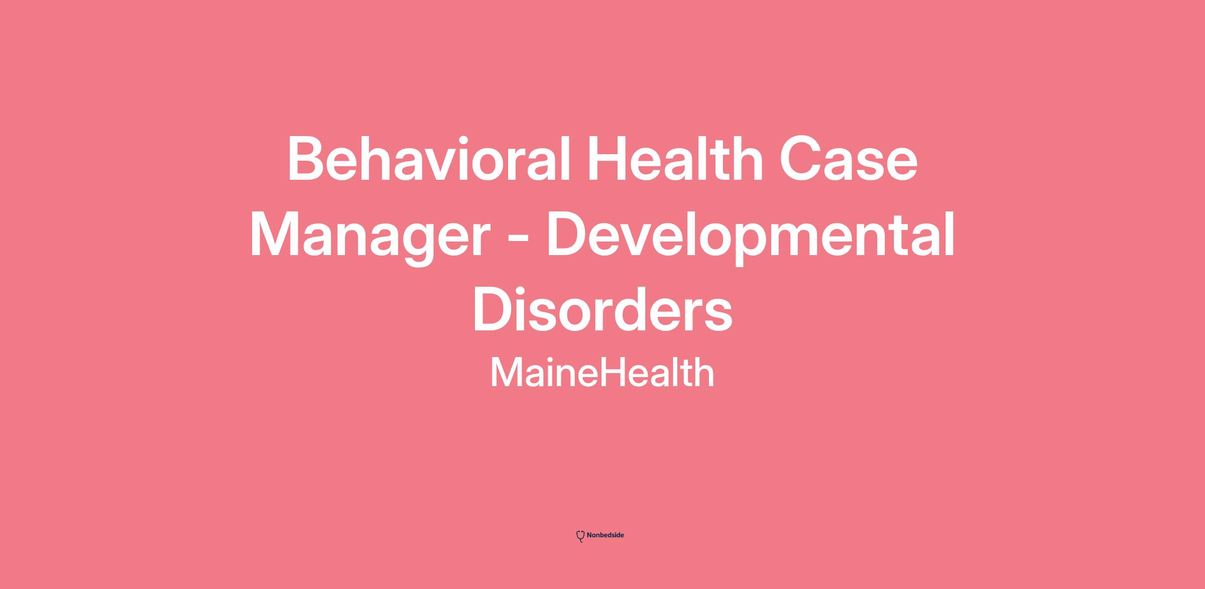 Join to apply for the Behavioral Health Case Manager - Developmental Disorders role at MaineHealth .