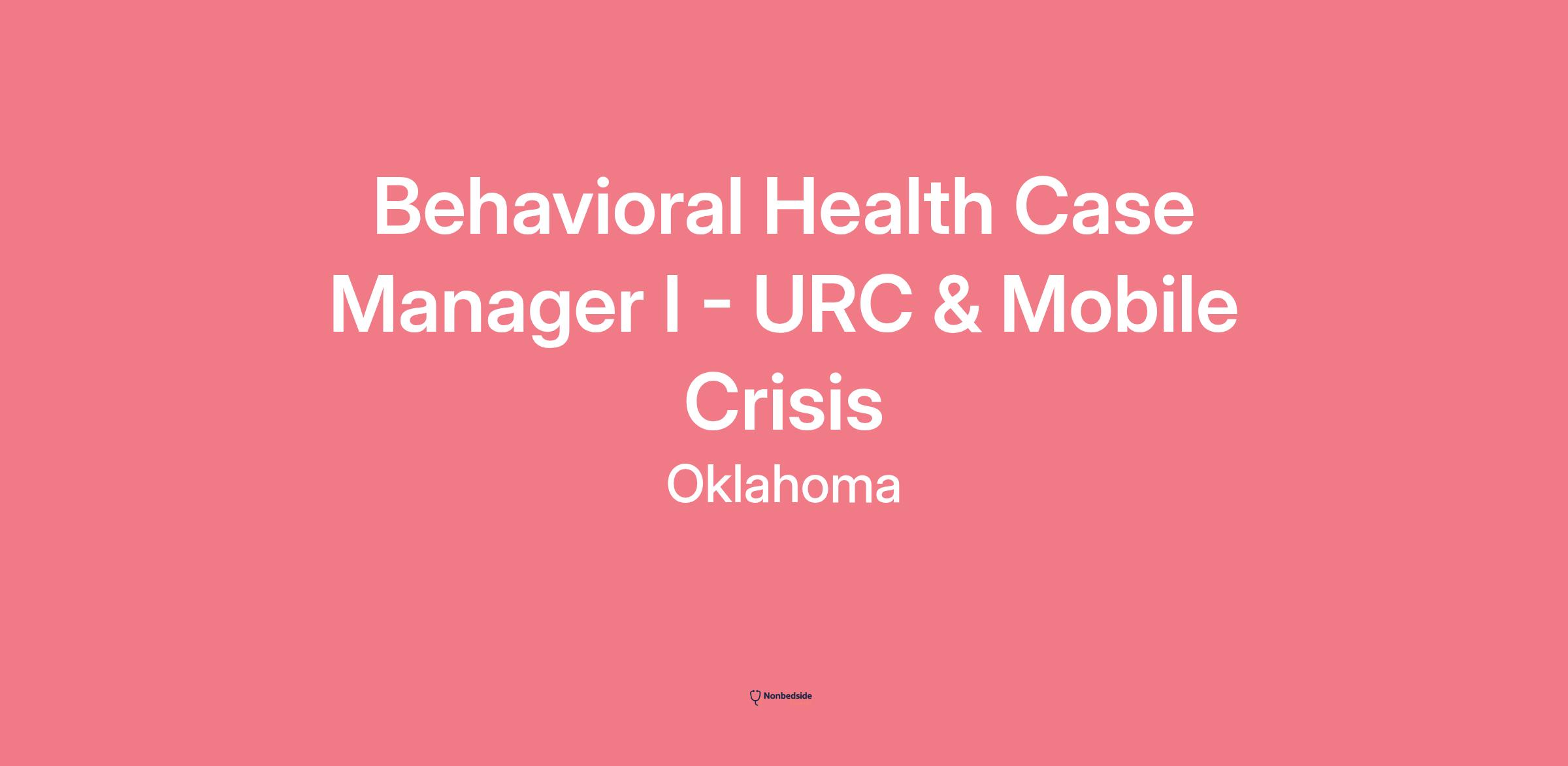 Overview Job Posting Title: Behavioral Health Case Manager I - URC & Mobile Crisis
