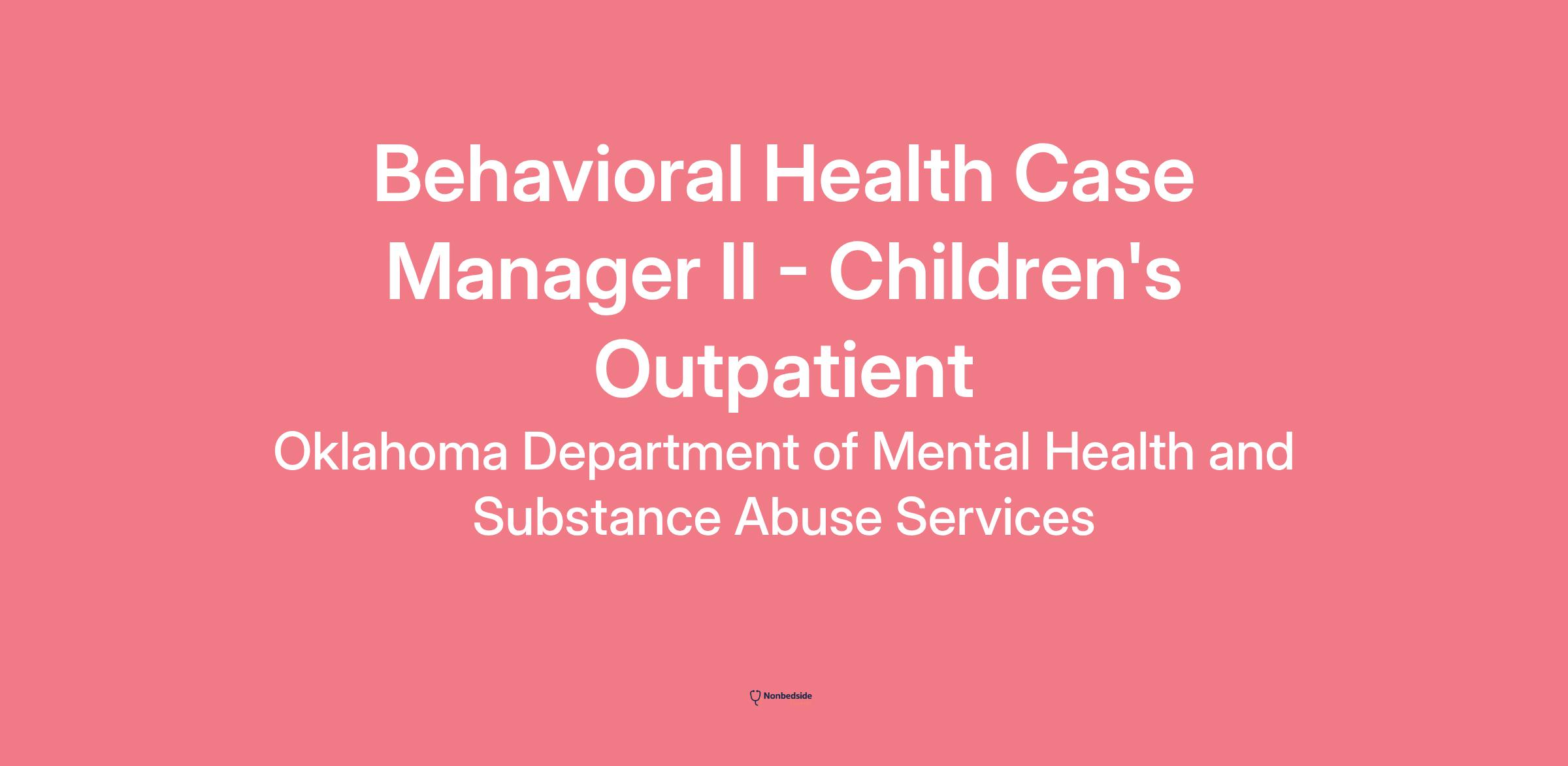 Overview Jim Taliaferro Community Mental Health Center is seeking a compassionate and skilled Behavioral Health Case Manager II to provide direct mental health services to children. The selected individual will be responsible for a range of services, including individual , group , and family therapy , as well as case management , psychosocial evaluations , and treatment planning .