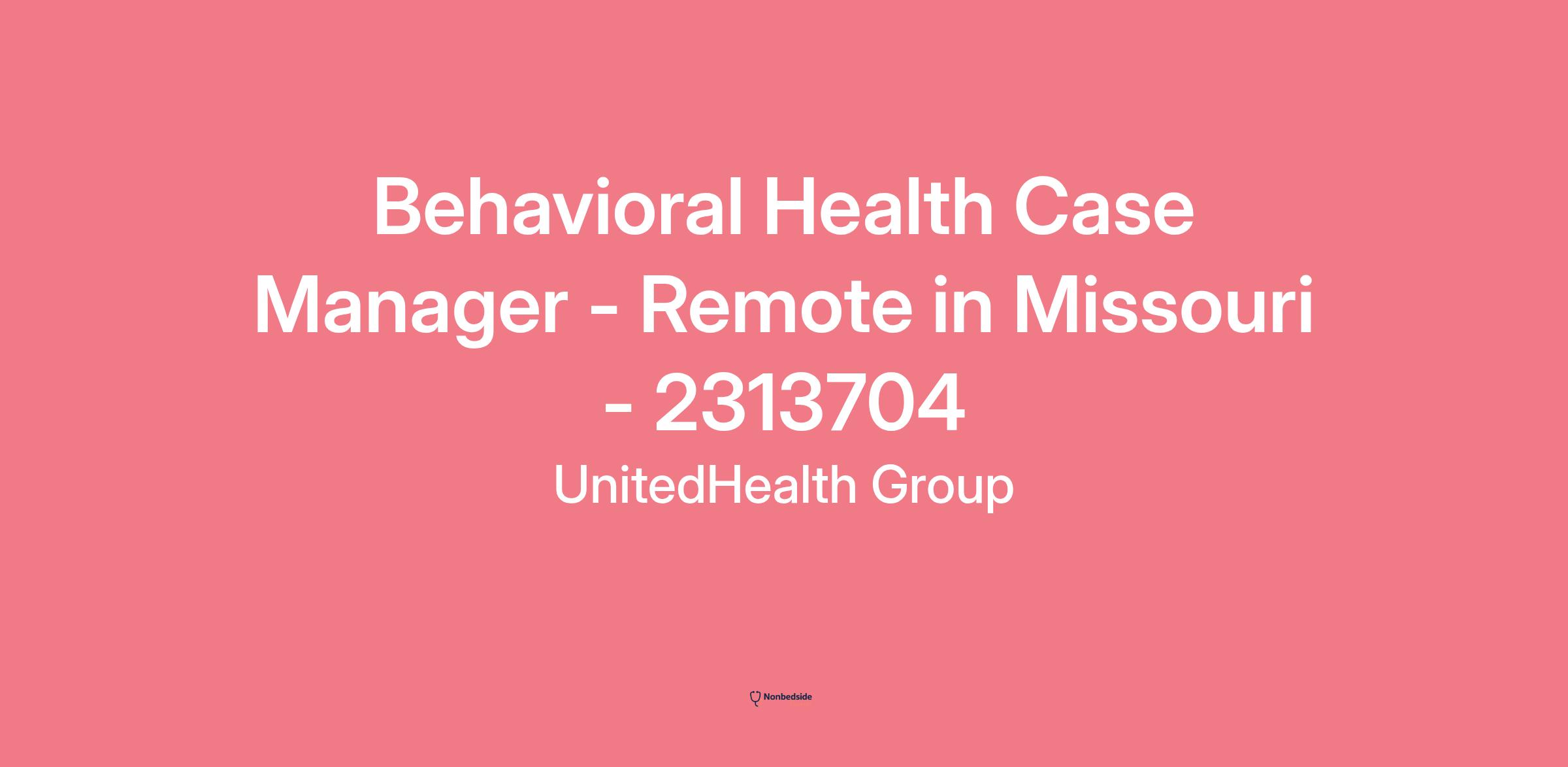 Behavioral Health Case Manager - Remote in Missouri - 2313704