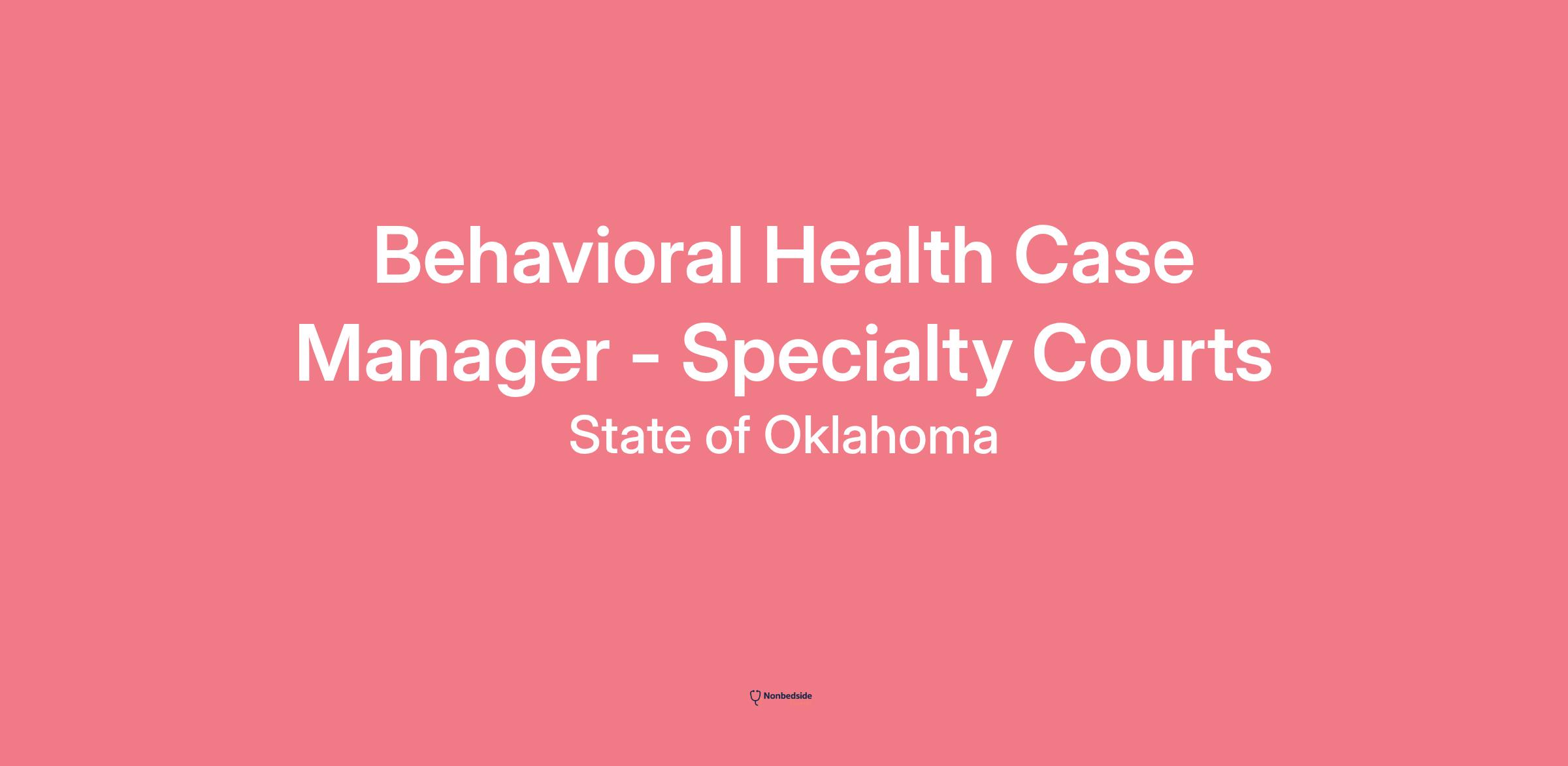 Overview Behavioral Health Case Manager - Specialty Courts. The State of Oklahoma is hiring for a full-time Case Manager to work in the Jim Taliaferro Community Mental Health Center (JTCMHC) adult outpatient program on the specialty court team for Offender Screening. JTCMHC is an interdisciplinary team of clinicians, peer staff, and doctors providing treatment to adults. Applicants will provide strength-based case management and rehabilitation and will work cooperatively with treatment providers and community partners to support the consumer’s overall recovery.