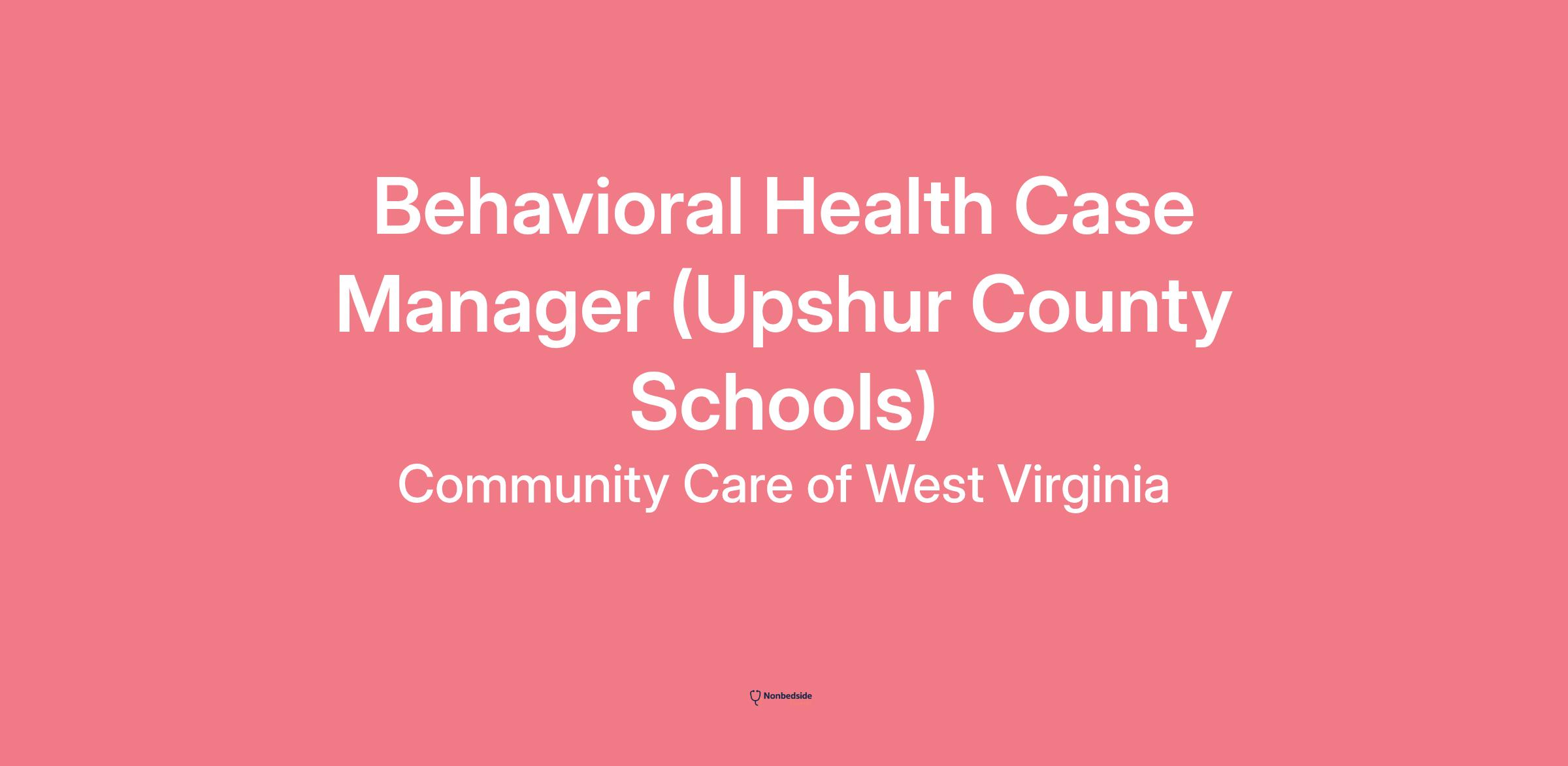 Join to apply for the Behavioral Health Case Manager (Upshur County Schools) role at Community Care of West Virginia .