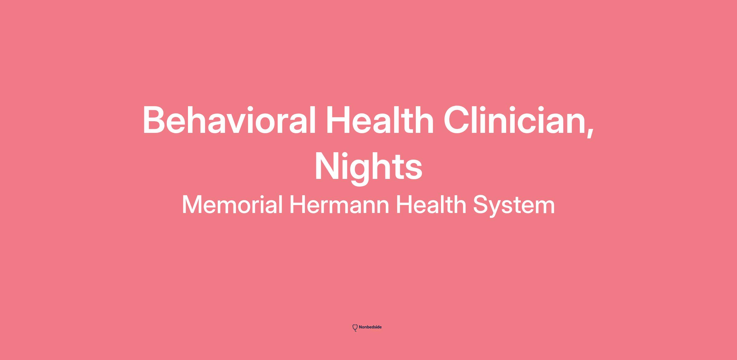 Behavioral Health Services (BHS) is made up of a multidisciplinary team of Psychiatrists, Mental Health Nurse Practitioners, Physician Assistants, Mental Health Professionals, Medical Assistants, and Administrative Staff. These professionals work together to provide a gold standard of care regarding effective treatment to support Memorial Hermann patients in an effort to connect the patient to the most appropriate level of care. Our goal is to increase access to behavioral health treatment services, promote better health outcomes for patients with chronic or urgent mental health treatment needs by utilizing empirically validated interventions, decrease unnecessary ER visits, and decrease incarcerations.