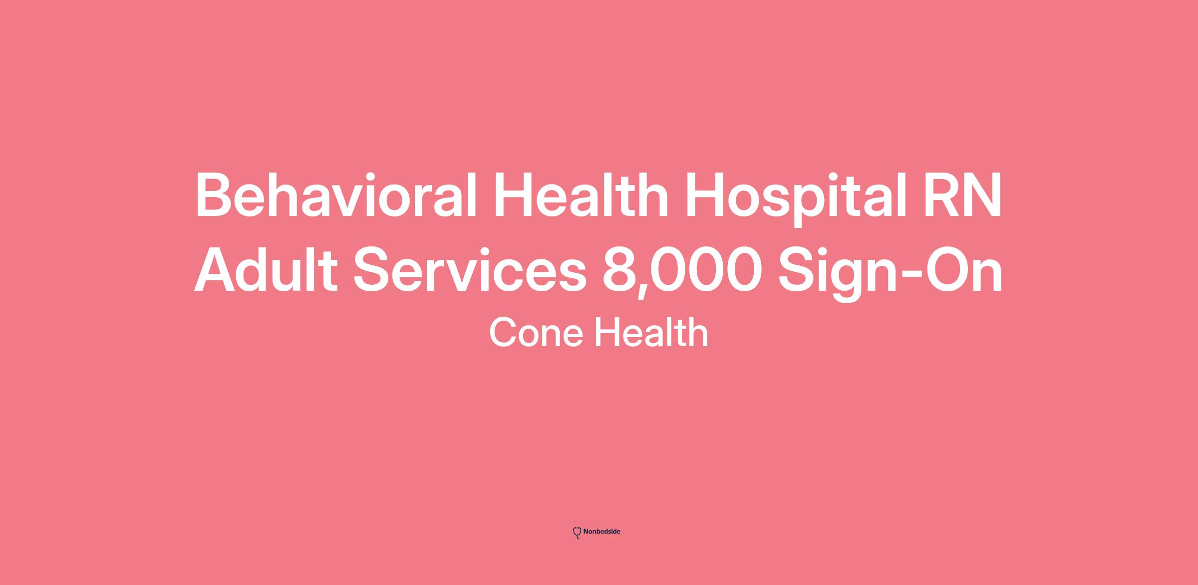 Behavioral Health Hospital RN Adult Services 8,000 Sign-On
