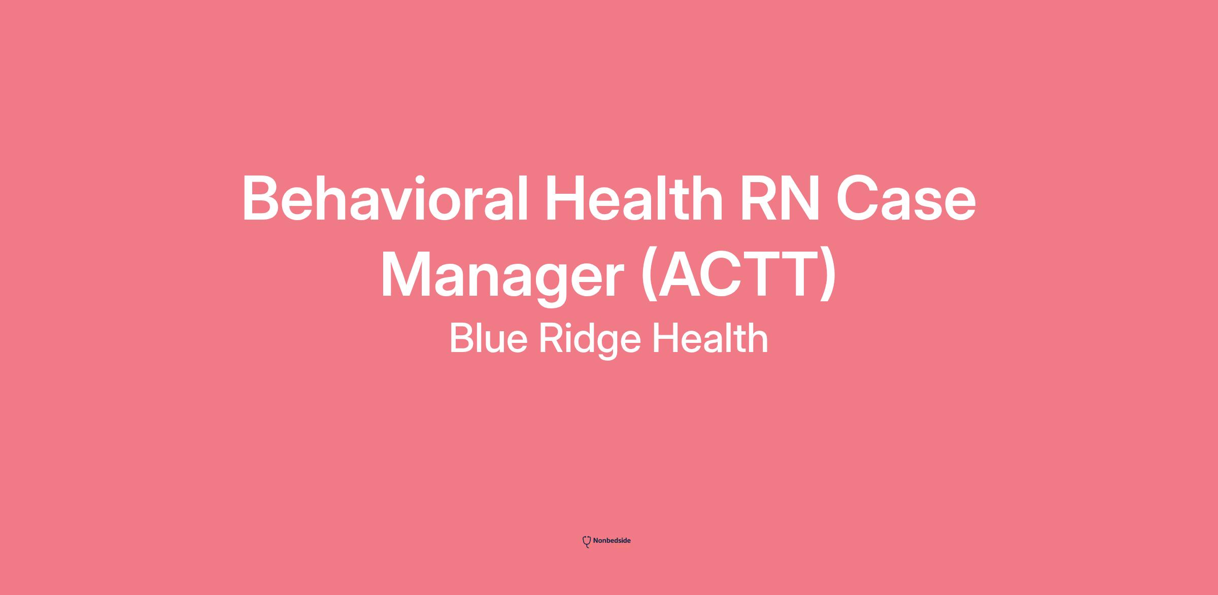 Blue Ridge Health is currently seeking a Behavioral Health RN Case Manager to be part of our Assertive Community Treatment Team (ACTT) in Waynesville, NC.