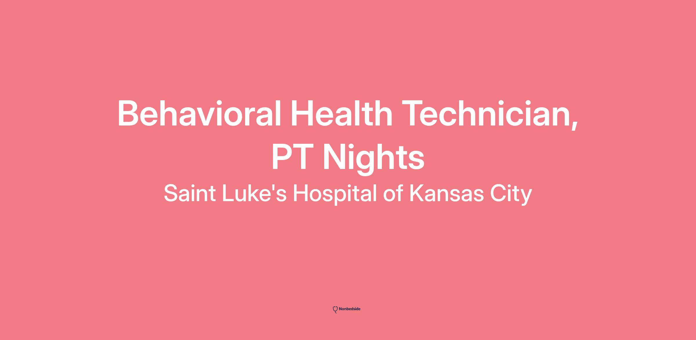 The best place to get care. The best place to give care . Saint Luke's 12,000 employees strive toward that vision every day. Our employees are proud to work for the only faith-based, nonprofit, locally owned health system in Kansas City. Joining Saint Luke's means joining a team of exceptional professionals who strive for excellence in patient care. Do the best work of your career within a highly diverse and inclusive workspace where all voices matter.Join the Kansas City region's premiere provider of health services. Equal Opportunity Employer.