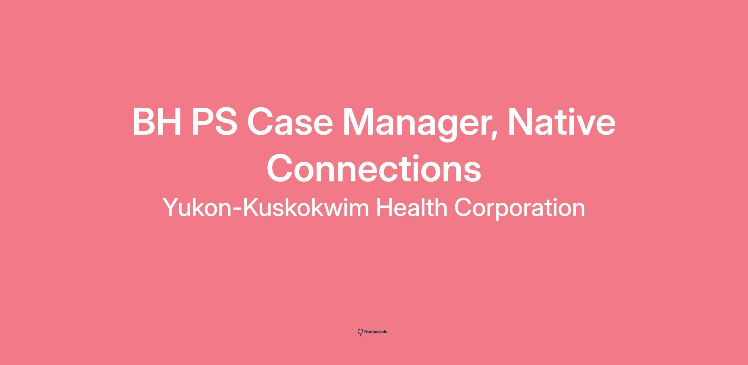 Join to apply for the BH PS Case Manager, Native Connections role at Yukon-Kuskokwim Health Corporation