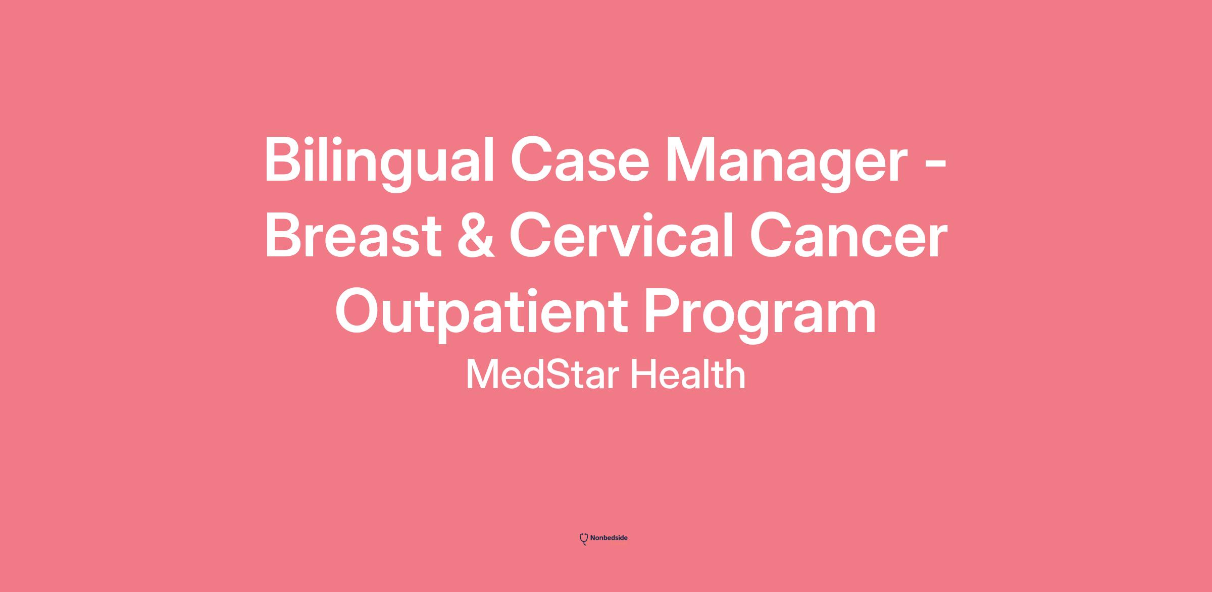 Join to apply for the Bilingual Case Manager - Breast & Cervical Cancer Outpatient Program role at MedStar Health