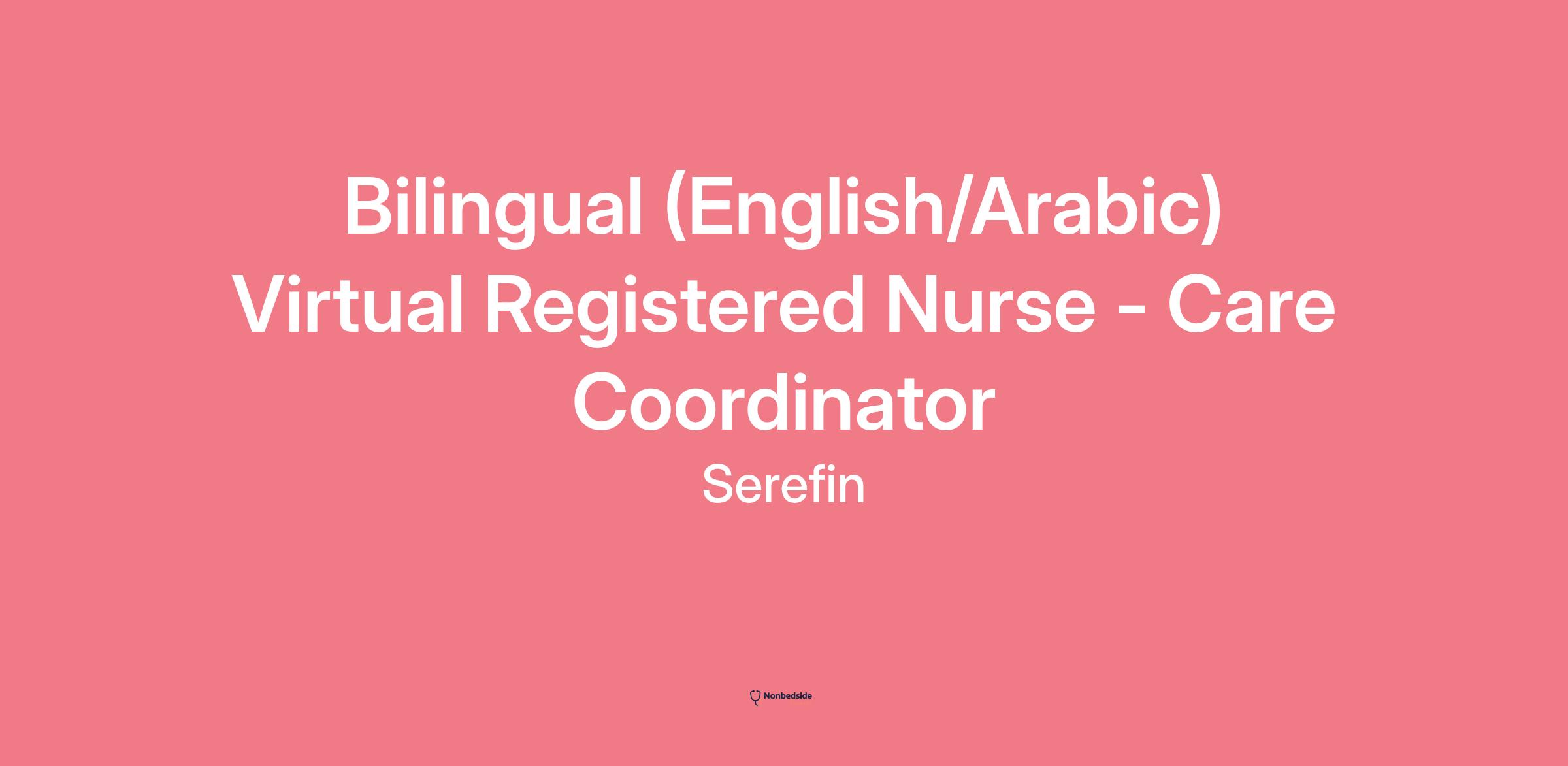 As a Bilingual (English/Arabic) Virtual Registered Nurse - Care Coordinator at Serefin, you will play a crucial role in supporting patients across various programs, including EAP (Employee Assistance Program), Health Concierge, and Mental Health Wellbeing. You will be responsible for delivering personalized care and assistance to patients and their families, ensuring they receive the support they need throughout their healthcare journey.