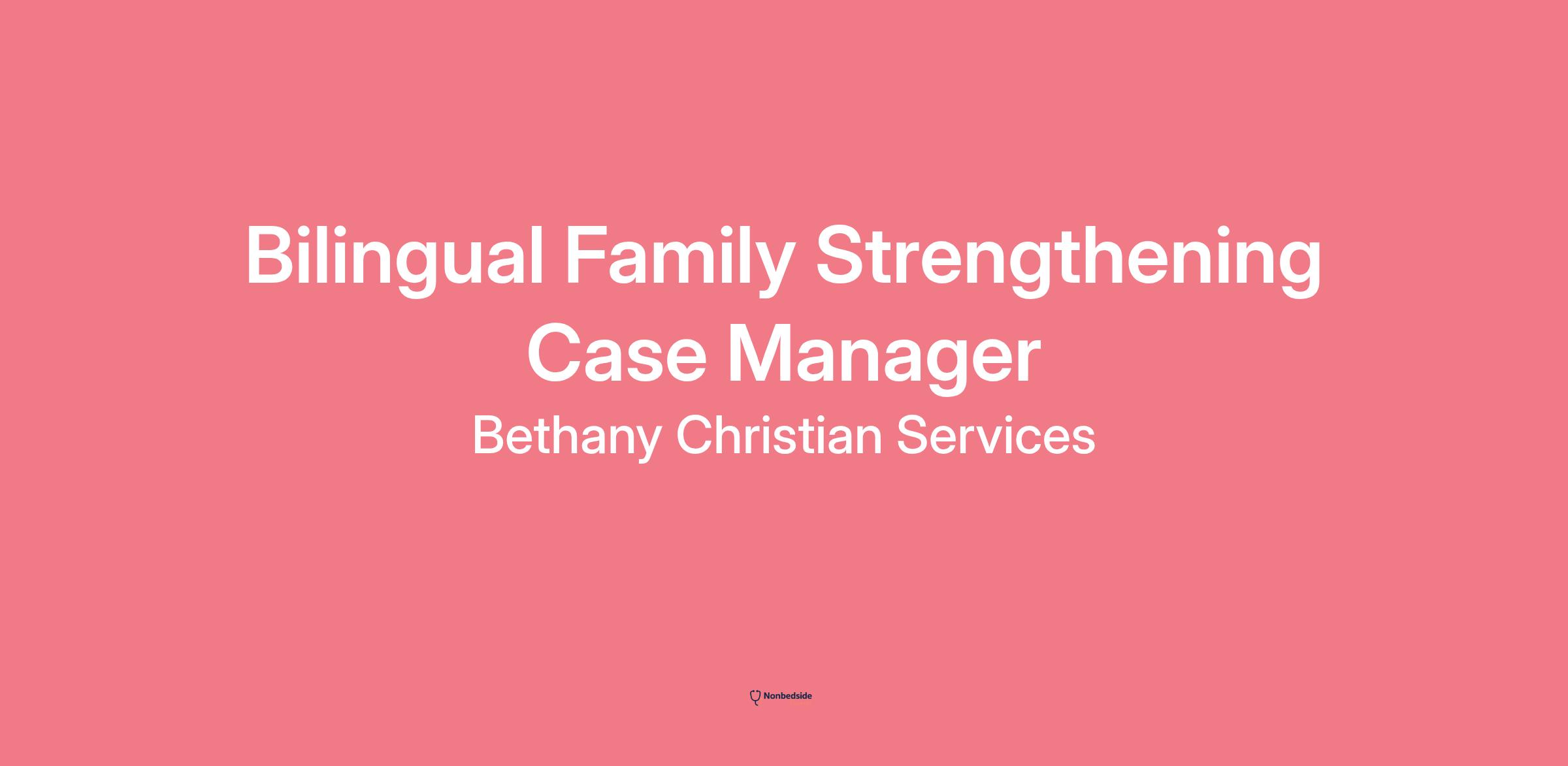 Join to apply for the Bilingual Family Strengthening Case Manager role at Bethany Christian Services .