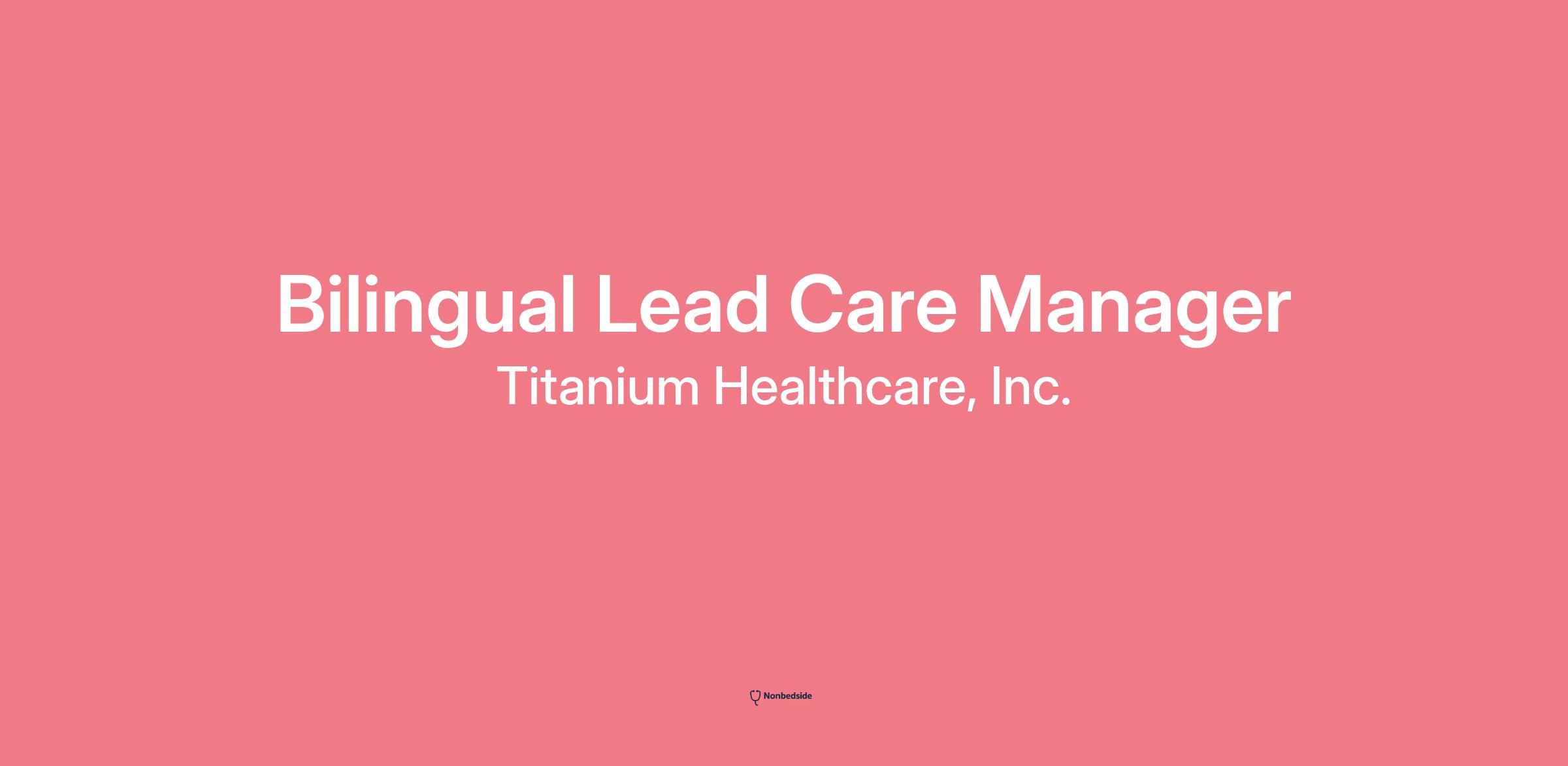Overview Join to apply for the Bilingual Lead Care Manager role at Titanium Healthcare Inc.