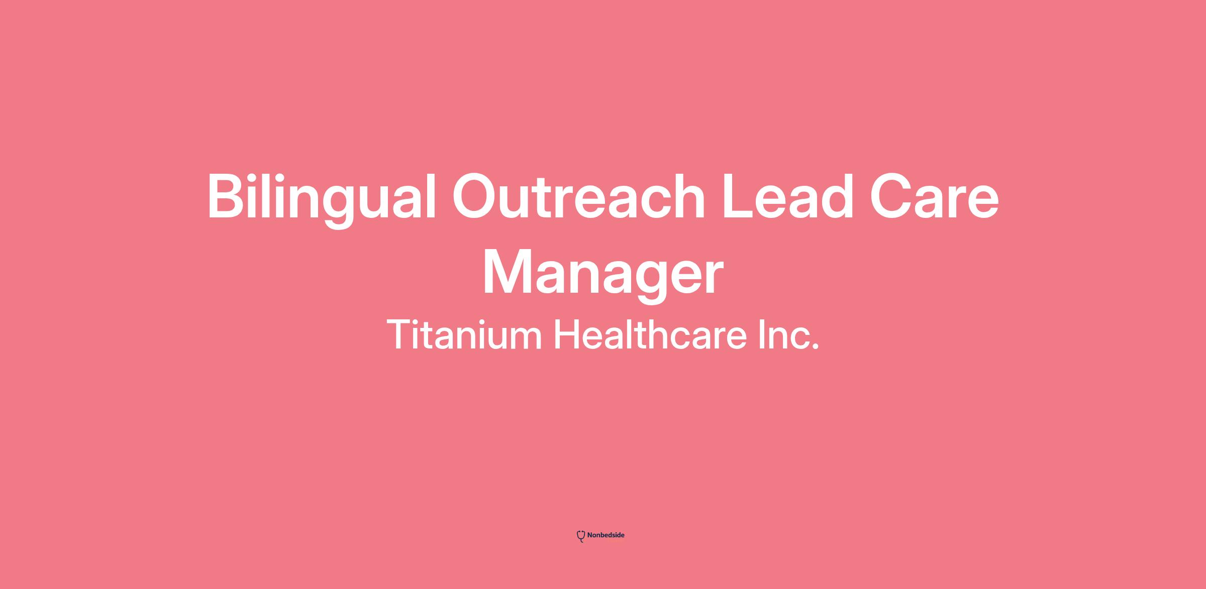Join to apply for the Bilingual Outreach Lead Care Manager role at Titanium Healthcare Inc.