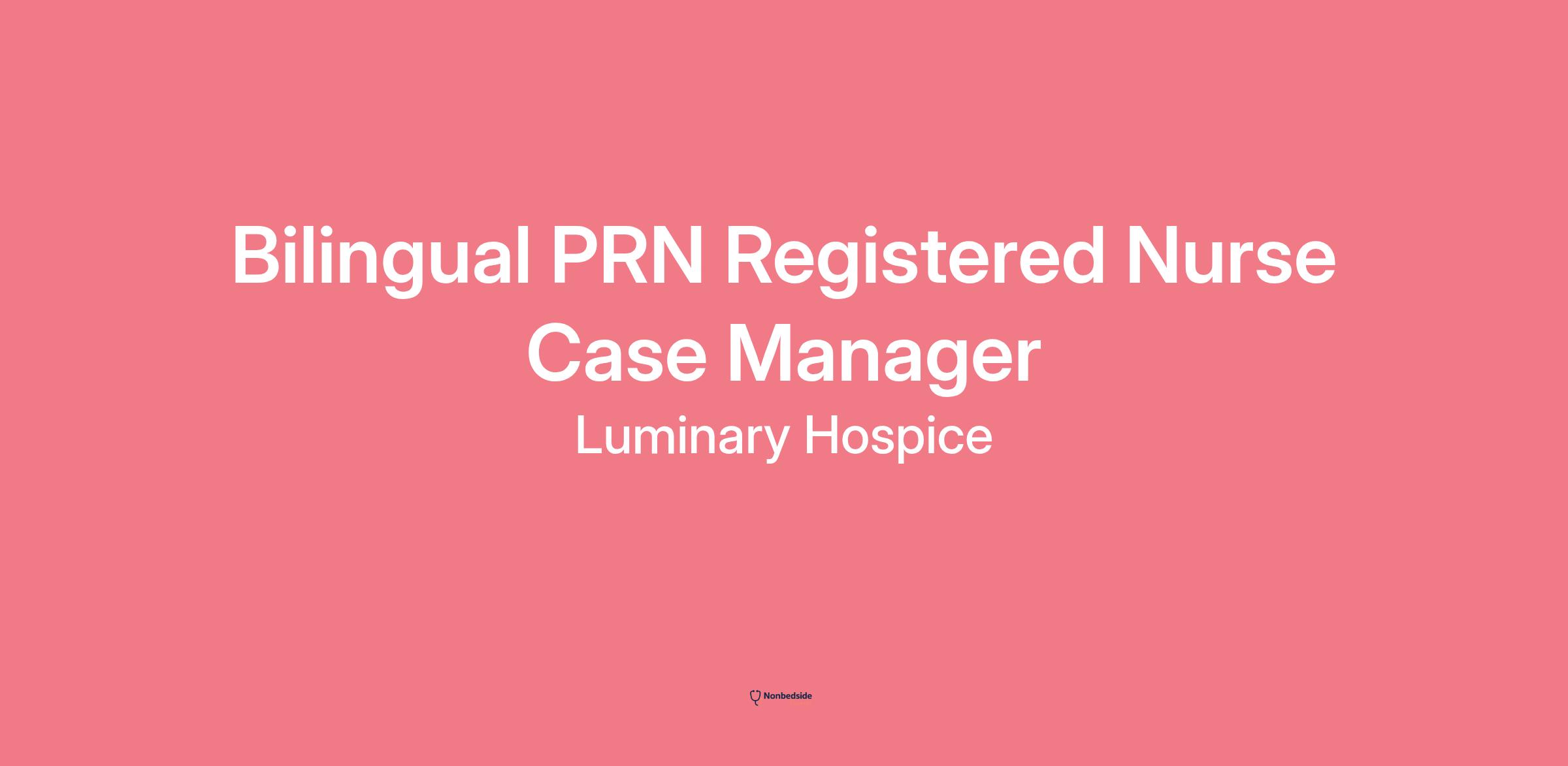 Bilingual PRN Registered Nurse Case Manager At Luminary Hospice, we are a mission-driven organization that empowers our team members to shape our culture in order to allow them to provide the highest quality support to patients and families throughout their entire end-of-life journey.