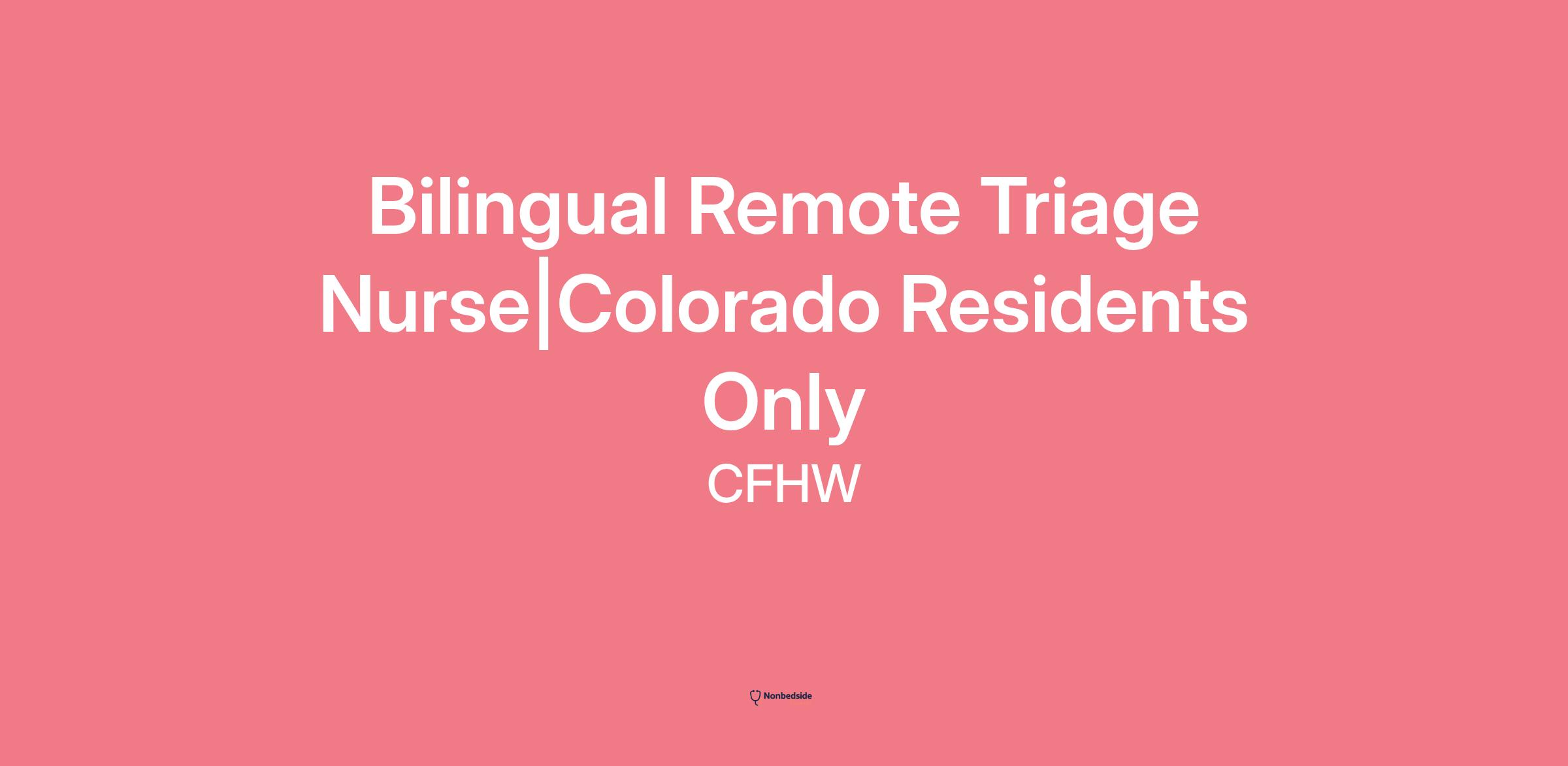 Bilingual Remote Triage Nurse|Colorado Residents Only