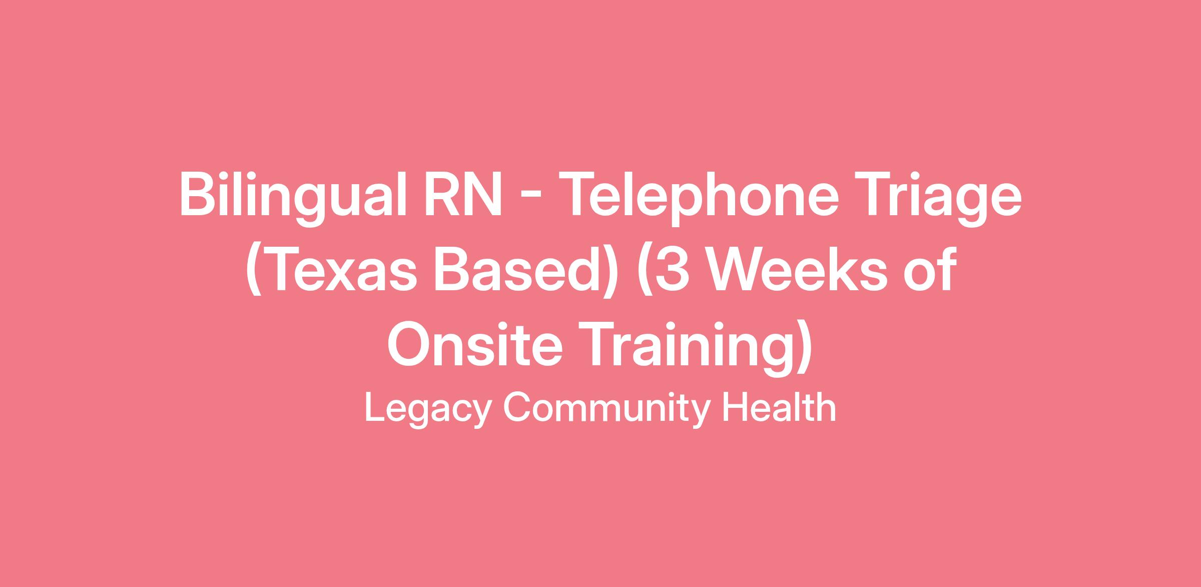 Join the visionary team at Legacy Community Health Services and pioneer the future of community healthcare. As an Bilingual RN Telephone Triage Nurse, you will be at the forefront of transforming patient care through digital innovation and compassionate interactions. This role is pivotal in our mission to provide groundbreaking healthcare solutions.