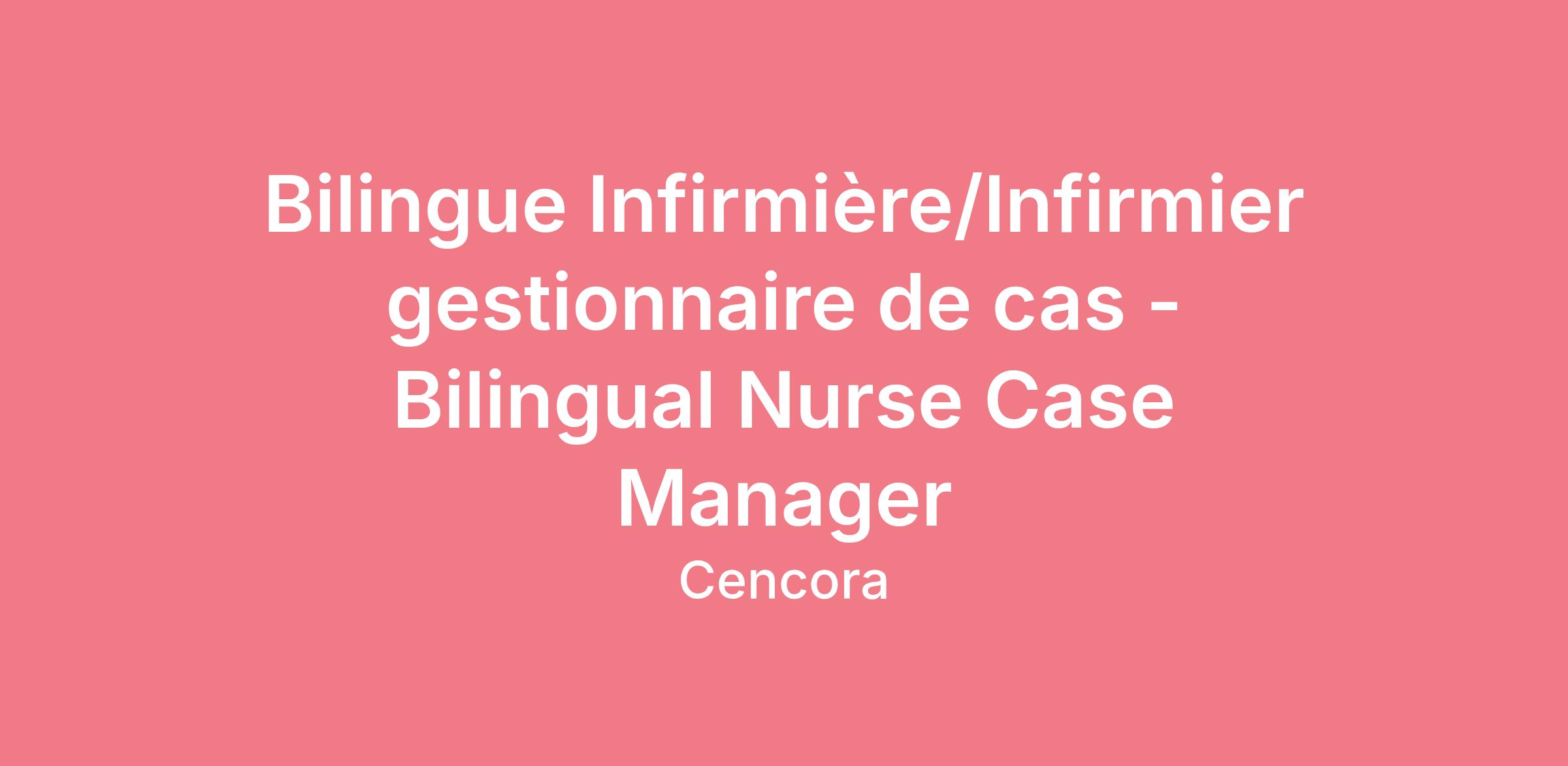 Le(la) candidat(e) préféré(e) est un(e) infirmier(ère) avec une expérience dans les soins de santé et la gestion de cas, dans un cabinet médical ou un hôpital ou dans l’industrie de l’assurance ou de la biopharmaceutique;