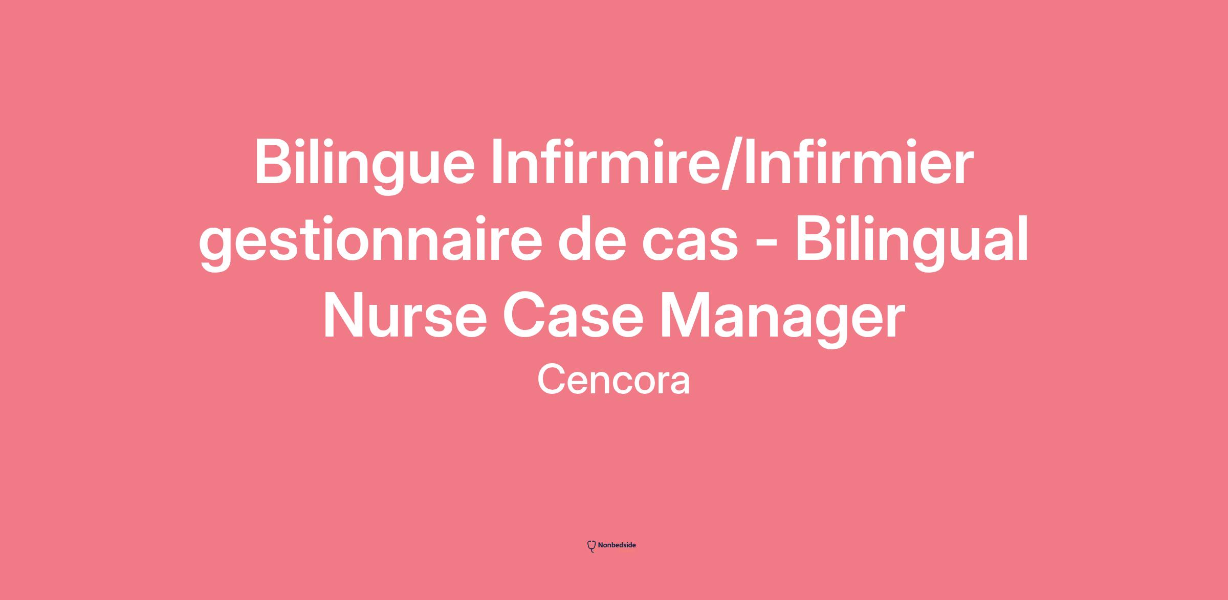 Bilingue Infirmire/Infirmier gestionnaire de cas - Bilingual Nurse Case Manager