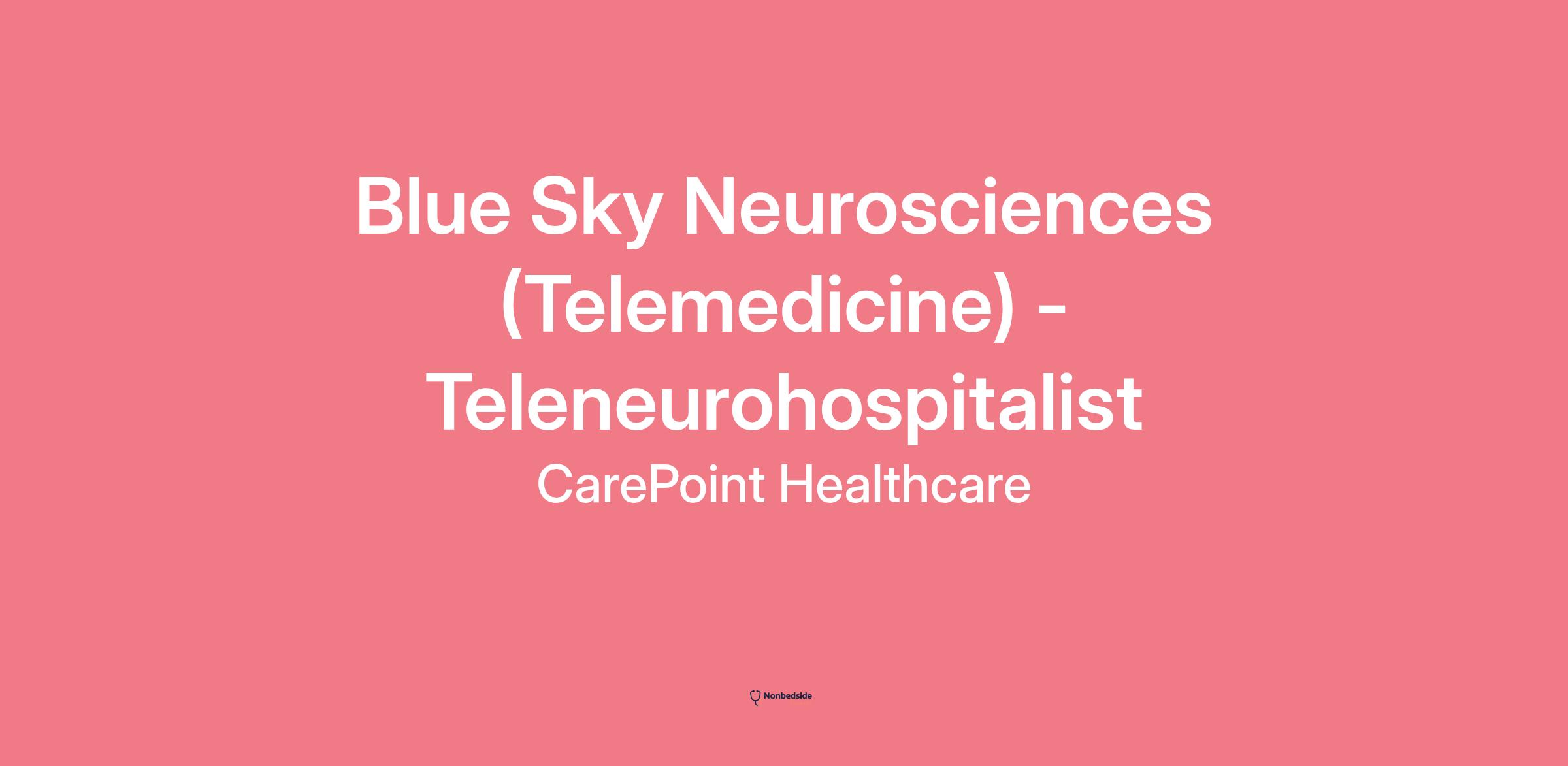 Position Description Come be a part of a physician-owned, physician centered telehealth organization with market leading compensation. CarePoint Blue Sky Neurosciences is currently seeking neurologists to join our growing tele-neurology services. This is an opportunity to work remotely, with annual earning potential over $400,000, all while practicing cutting edge neurology with one of the country’s fastest growing and largest teleneurology practices.