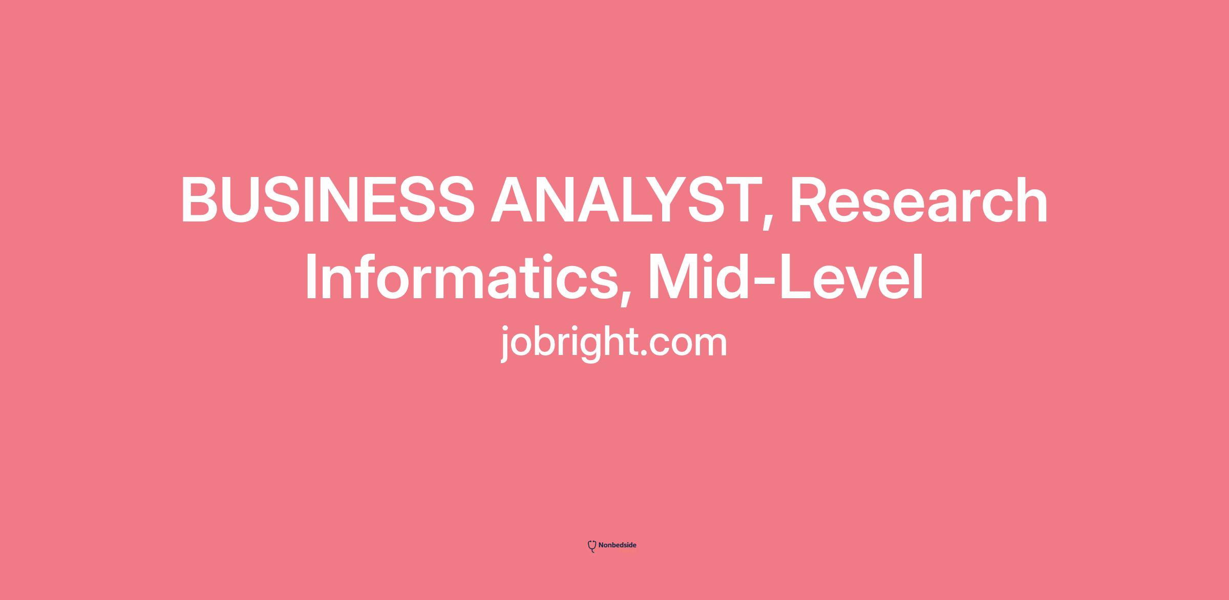 BUSINESS ANALYST, Research Informatics, Mid-Level Join to apply for the BUSINESS ANALYST, Research Informatics, Mid-Level role at Jobright.ai