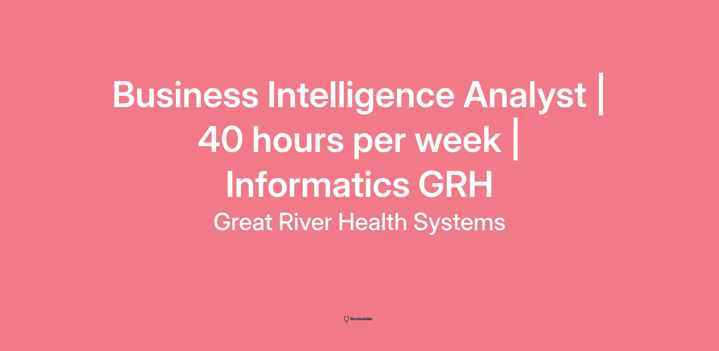 Business Intelligence Analyst | 40 hours per week | Informatics GRH page is loaded## Business Intelligence Analyst | 40 hours per week | Informatics GRHlocations: West Burlington, Iowatime type: Full timeposted on: Posted Todayjob requisition id: R-07530**Minimum Hiring Wage:**From $81,889.60 a year**Job Details:**Scheduled hours: Days**Job Description:****A Brief Overview** The Business Intelligence Analyst transforms data into insights using modern analytics tools. Duties include assessing business and technical requirements to deliver content that enhances clinical and business decision-making, performing data analysis on various large and complex data models and datasets, developing interactive dashboards for self-service or producing detailed analysis in Microsoft Excel, maintaining existing business intelligence dashboards, and assisting data consumers with training or further analysis, as needed. **What you will do*** Assesses data, analytics, and data modeling requests to determine business and technical requirements* Performs intermediate data analysis techniques and presents findings* Identifies existing solutions or designs new solutions to satisfy analytics requests* Creates and maintains documentation that includes the business need, key assumptions, technical information, external references, user manuals/tutorials and other relevant information* Performs data gap analysis based on enterprise data availability and business requirements* Communicates data gap analysis and data integrity issues, as well as recommendations, to requestors and data stewards* Contributes ideas and seeks ways to improve assigned processes and workflows* Provides training and shares insights with customers on data analytics content and reporting* Develops and maintains a general understanding of statistics and data analytics* Keeps current on industry knowledge, skills and certifications to serve as a resource to employees and to conduct job duties**Qualifications:****Qualifications*** Bachelor’s Degree in Arts/Sciences (BA/BS) Bachelor’s degree or equivalent experience in Business, Finance, Healthcare, Information Systems, Statistics, or related field Preferred* 1-3 years Experience working with data, report writing tools, dashboards/data visualization and/or analytics software applications (i.e., Business Objects, SQL, Microsoft BI, Excel, Tableau or other relevant applications.) Preferred* 1-3 years experience working with, or knowledge of, healthcare related data such as claims, financials, EHR/Clinical or quality reporting Preferred* Strong organizational skills and attention to detail**Benefits:****We are excited to offer an aggressive compensation and benefits package for qualifying positions, which includes:*** Competitive base pay* Matching retirement programs* Health, Dental and Vision plans* Health Savings and Flexible Spending Accounts* Employee discounts including car rental, cell-phone plans* Employer-paid, Long-Term Disability, Life, and AD&D* Paid time off (PTO)* Education Assistance Program* Employee Assistance Program* Employee Referral Bonus Program* Discounted cafeteria meals* Paid Parental Leave* Employee Service Recognition program* Voluntary plans including: Life, AD&D, Short-Term Disability, Critical Illness, Accident, Insurance, and Hospital Indemnity*Great River Health and its affiliates are Equal Opportunity employers. All qualified applicants will receive consideration for employment without regard to race, color, religion, sex, sexual orientation, gender identity and expression, age, national origin, mental or physical disability, genetic information, veteran status, or any other status protected by federal, state, or local law.*