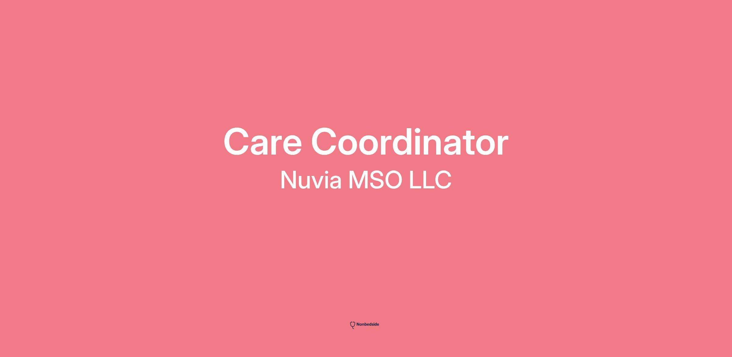 Compensation: Nuvia offers competitive base pay. In addition, Nuvia offers our Care Coordinators the unique opportunity to earn both monthly performance bonuses and quarterly bonuses, which when combined give our Care Coordinators the ability to earn an additional 32K/year beyond their base pay.