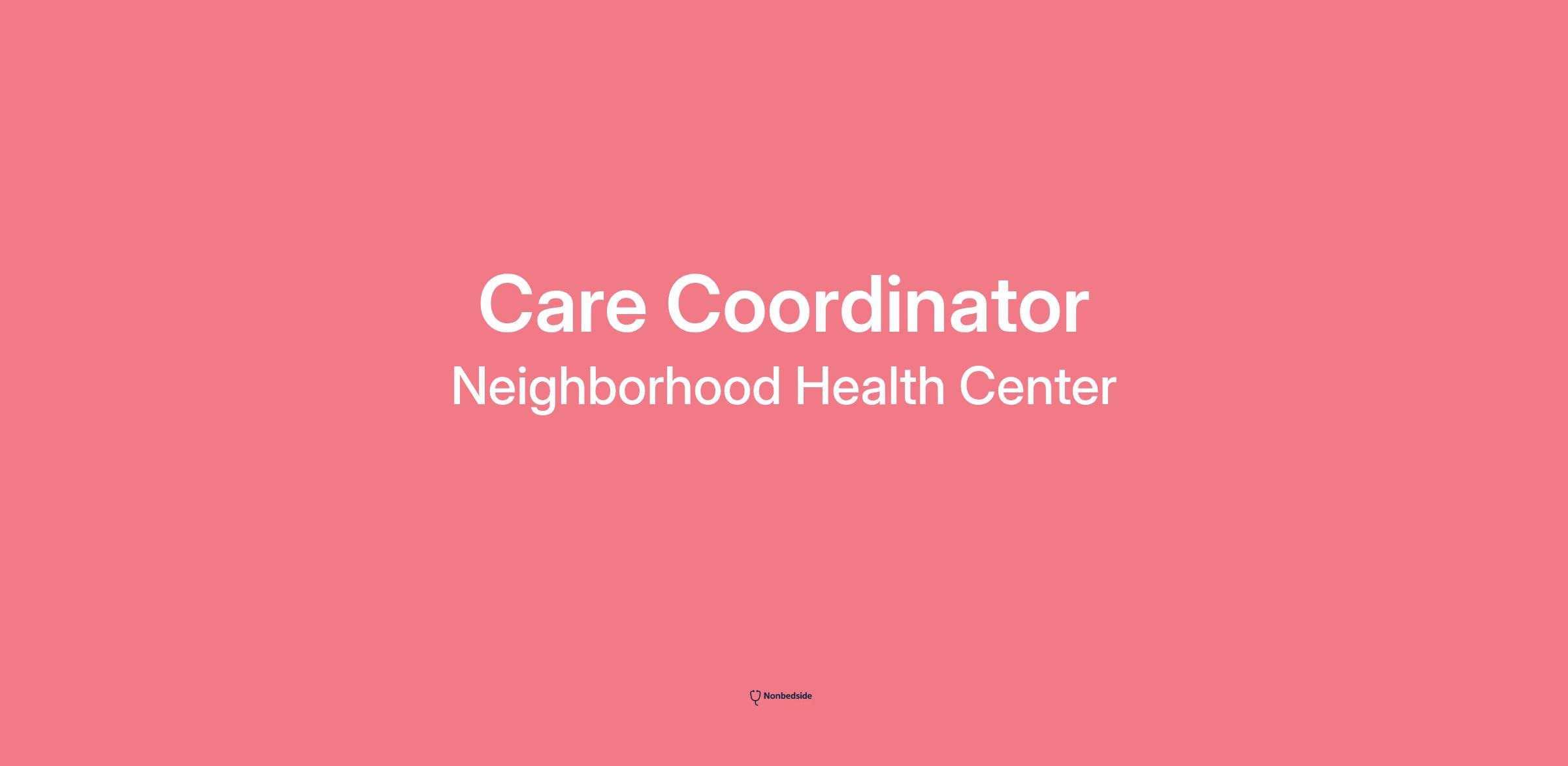 If you believe healthcare is a right, that everyone deserves high quality care so they can enjoy their highest level of health and wellbeing, and you value each person's individual story consider joining us at Neighborhood! As a care coordinator, you'll have an important role in creating a positive experience and improving health outcomes for patients. And, you won't be working weekends.