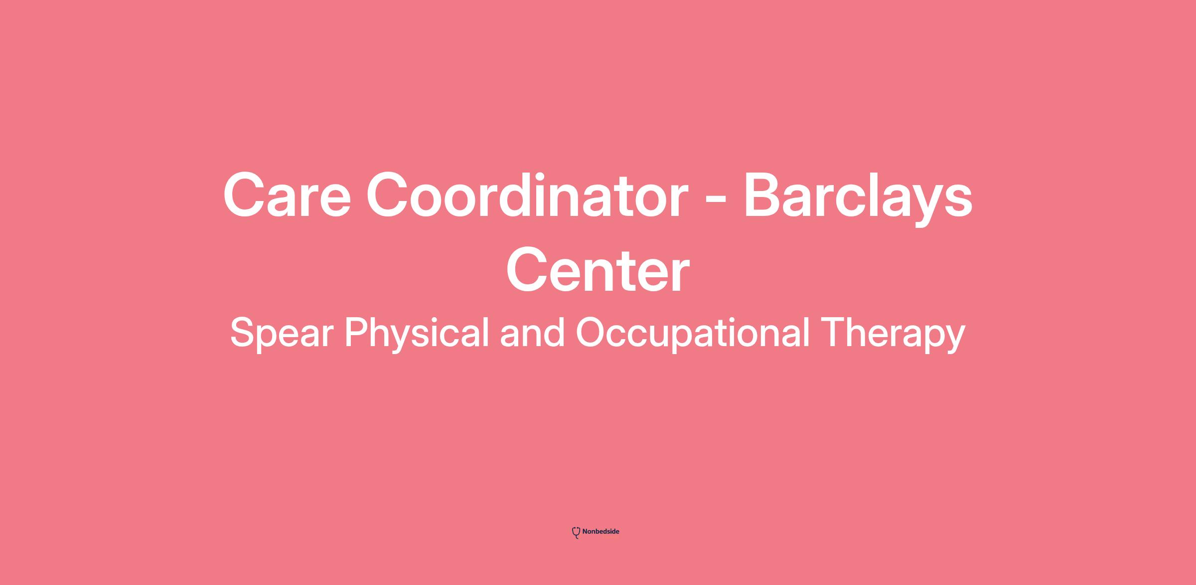 Spear Physical and Occupational Therapy is seeking a qualified, passionate Care Coordinator to join the team at our Barclays Center clinic in Prospect Heights. Care Coordinators are responsible for supporting patient care by making our patients feel welcomed and valued whilst also controlling the flow of the appointment. Care Coordinators are expected to respond to all phone calls and emails within 2 hours and always within 24 hours. Care Coordinators will guide our patients through our out-of-network experience and greet all patients who enter the clinic with a smile. Care Coordinators are expected to execute 5-star customer service. Spear strives to foster a true community environment for both patients and team members; therefore, a collaborative spirit is valued to ensure everyone receives the care and support they need.