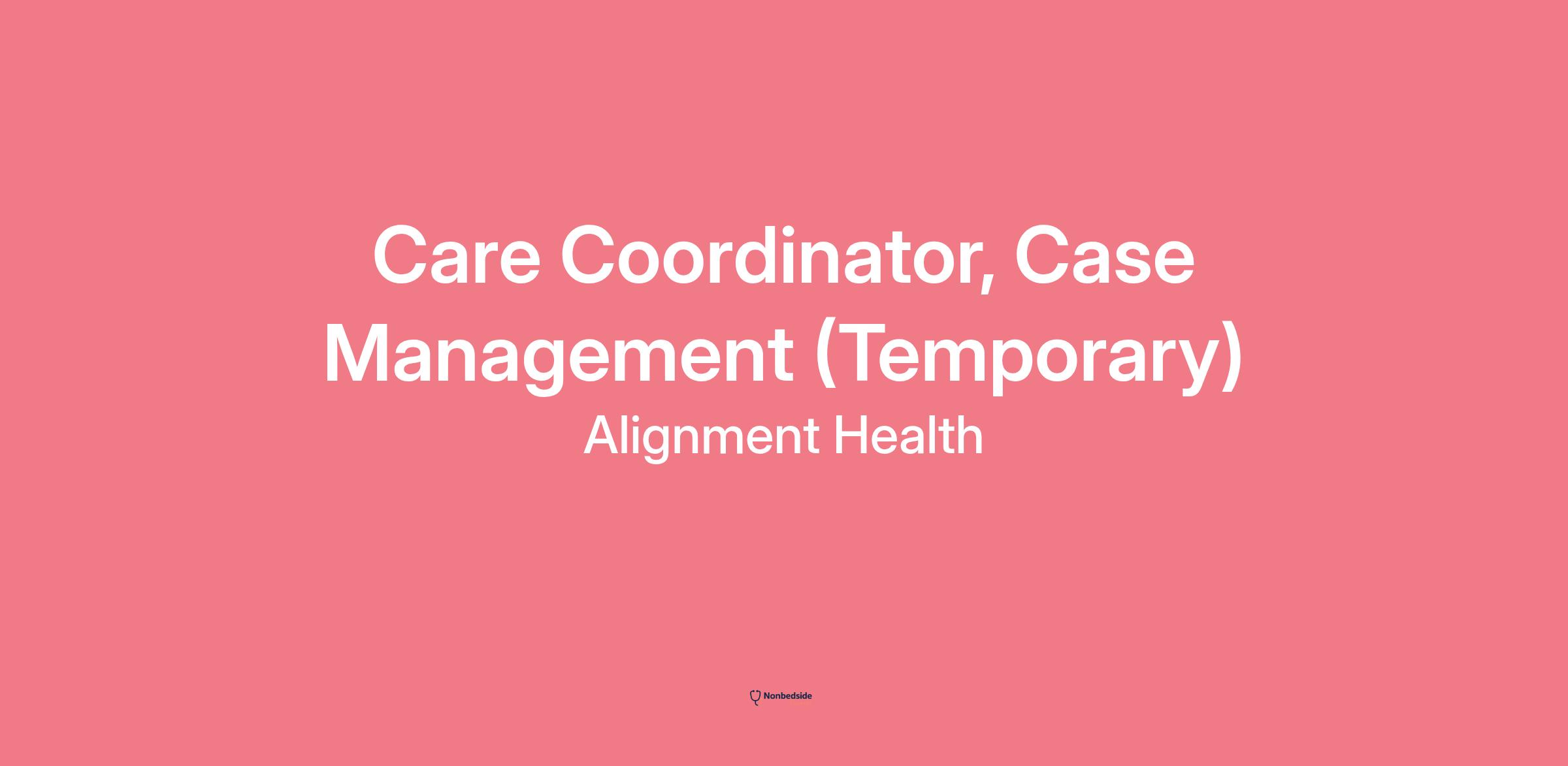 Overview Alignment Health is seeking a remote care coordinator to join the case management team for a long-term temporary engagement (with medical benefits). The Care Coordinator works in collaboration with the RN Case Manager as part of the interdisciplinary team. The Care Coordinator supports members with closing care gaps and addressing care coordination needs as directed by the RN Case Manager. As part of the Case Management team, the Care Coordinator is responsible for the health care management and coordination of care for members with complex and chronic care needs. The Care Coordinator performs CM Coordinator functions for the members enrolled in Case Management.