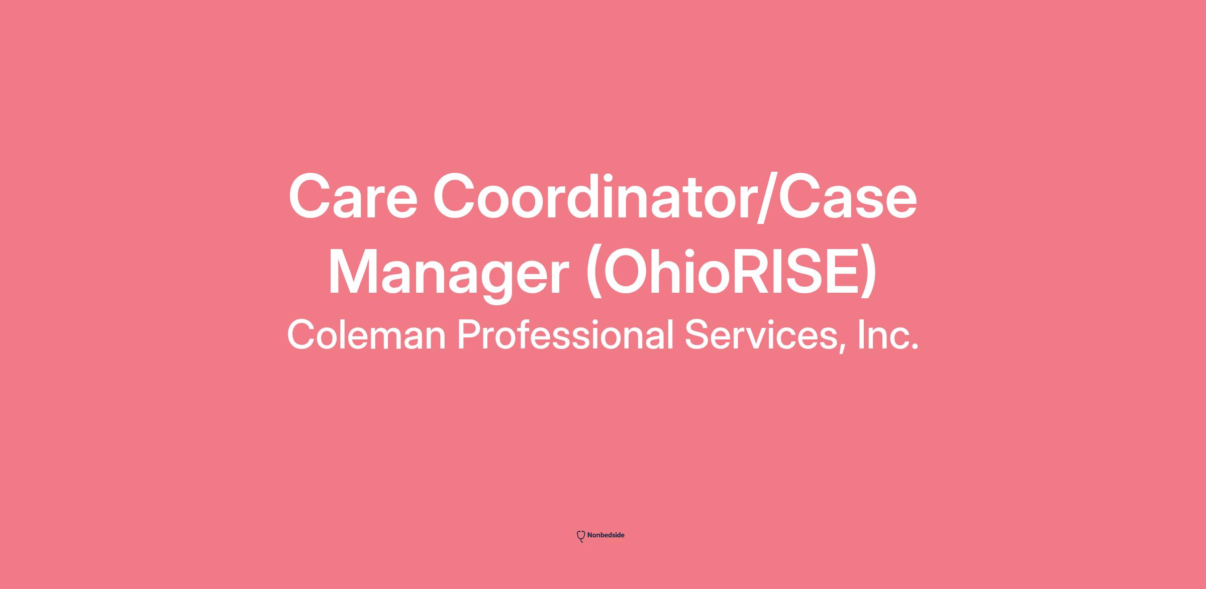 Care Coordinator/Case Manager (OhioRISE)Shape the Future of Ohio Youth as a Care Coordinator/ Case Manager (OhioRISE) with Coleman Health Services!Are you ready to be part of a visionary team that empowers Ohio's youth to thrive? Your passion for making a difference is what we're looking for! Join us as a Care Coordinator/ Case Manager (OhioRISE) and harness the power of high-fidelity wraparound principles to drive positive change in the lives of youth and families within our community. This is a full-time position based out of Wooster, Ohio, and will be serving Wayne County. Great opportunity for those with a background in QBHS/QMHS, social services, social work, or other mental health related fields.
