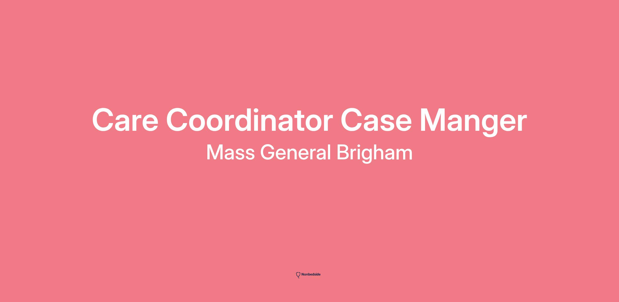Join to apply for the Care Coordinator Case Manger role at Mass General Brigham .